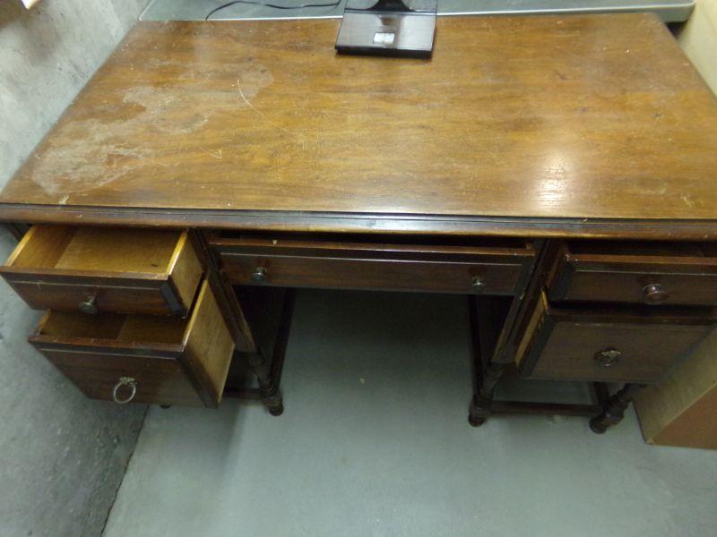 WOOD DESK 3 DRAWERS ON EACH SIDE, MEASUREMENTS ARE 30-1/2H x 48W x 27D