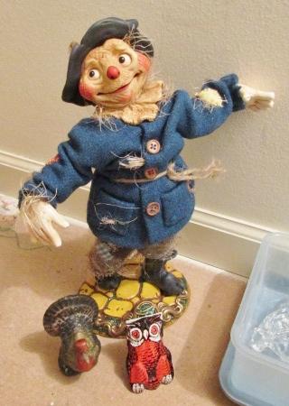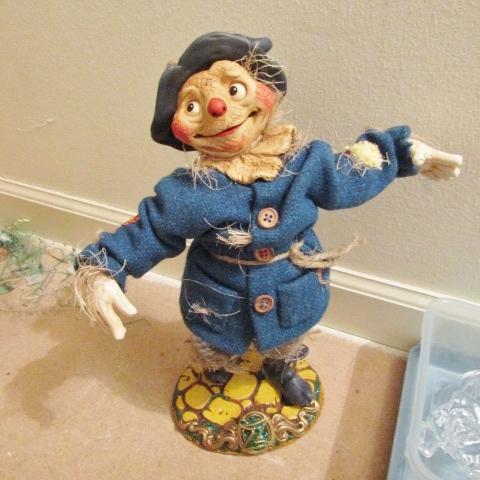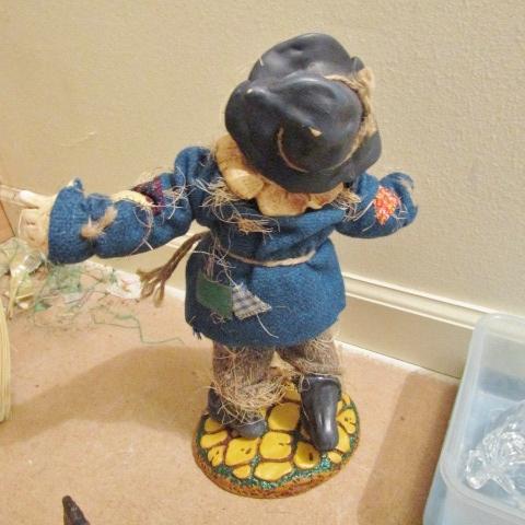 APPEARS TO BE THE SCARECROW FROM WIZARD OF OZ BECAUSE HE'S STANDING ON A YELLOW BRICK ROAD