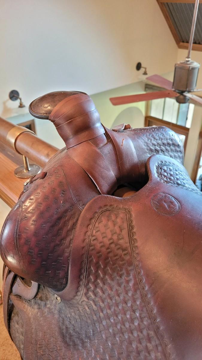 Lot 252: RARE Vintage 1926 JC HIGGINS Handmade Leather Saddle MODEL 8438