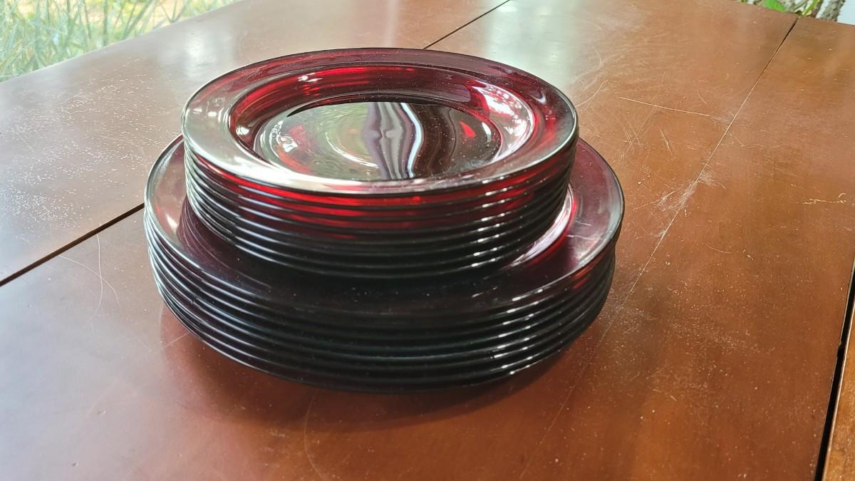 Lot 252: Ruby Red Glass 7.25" and 9.25" Plates