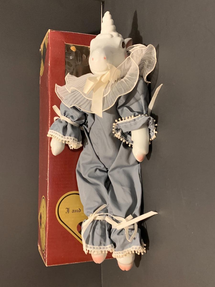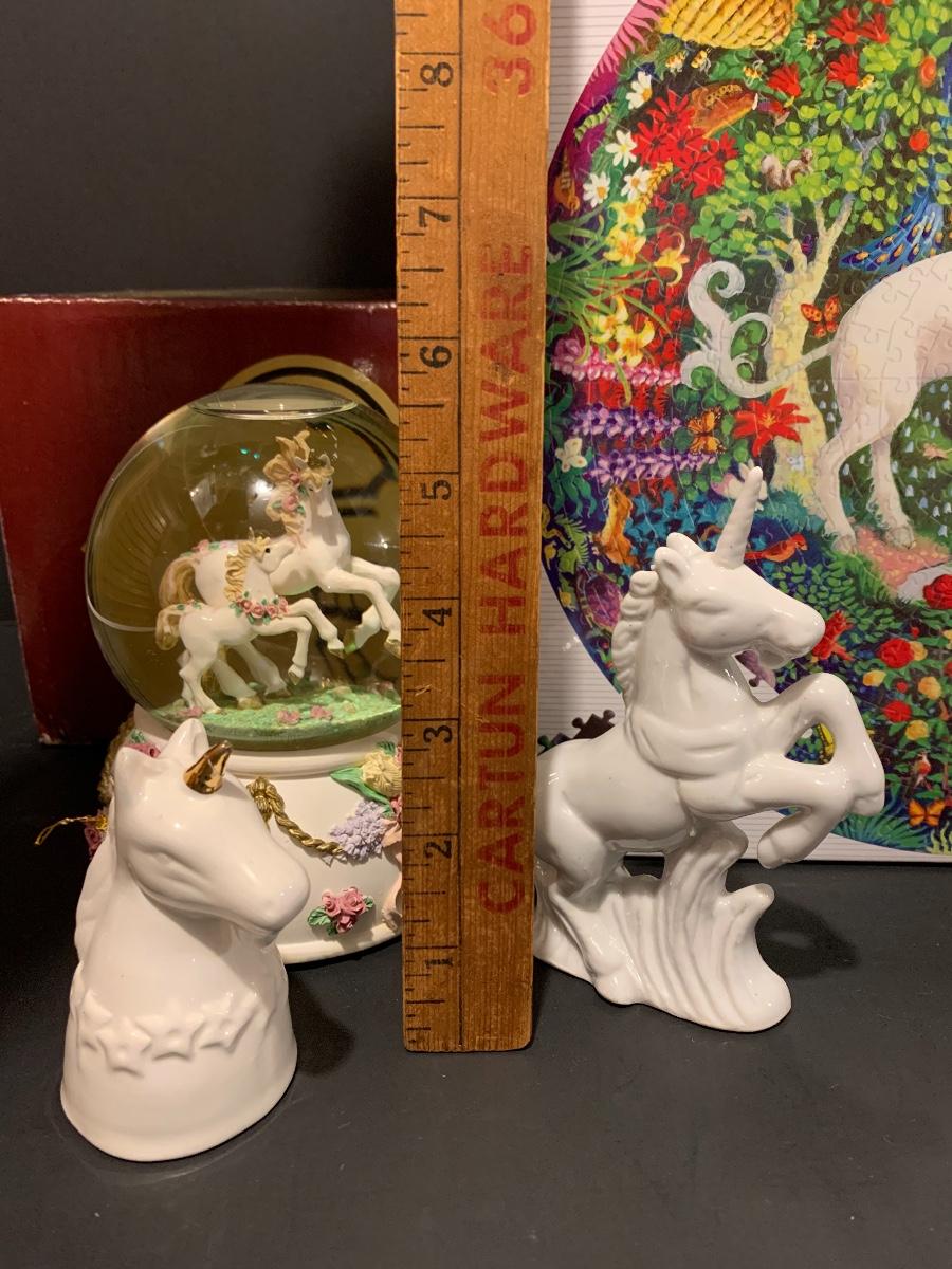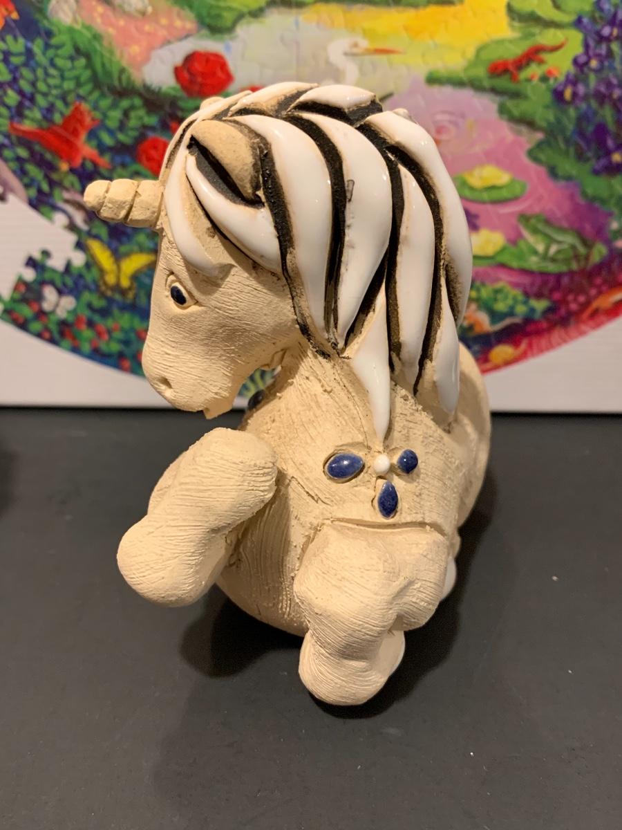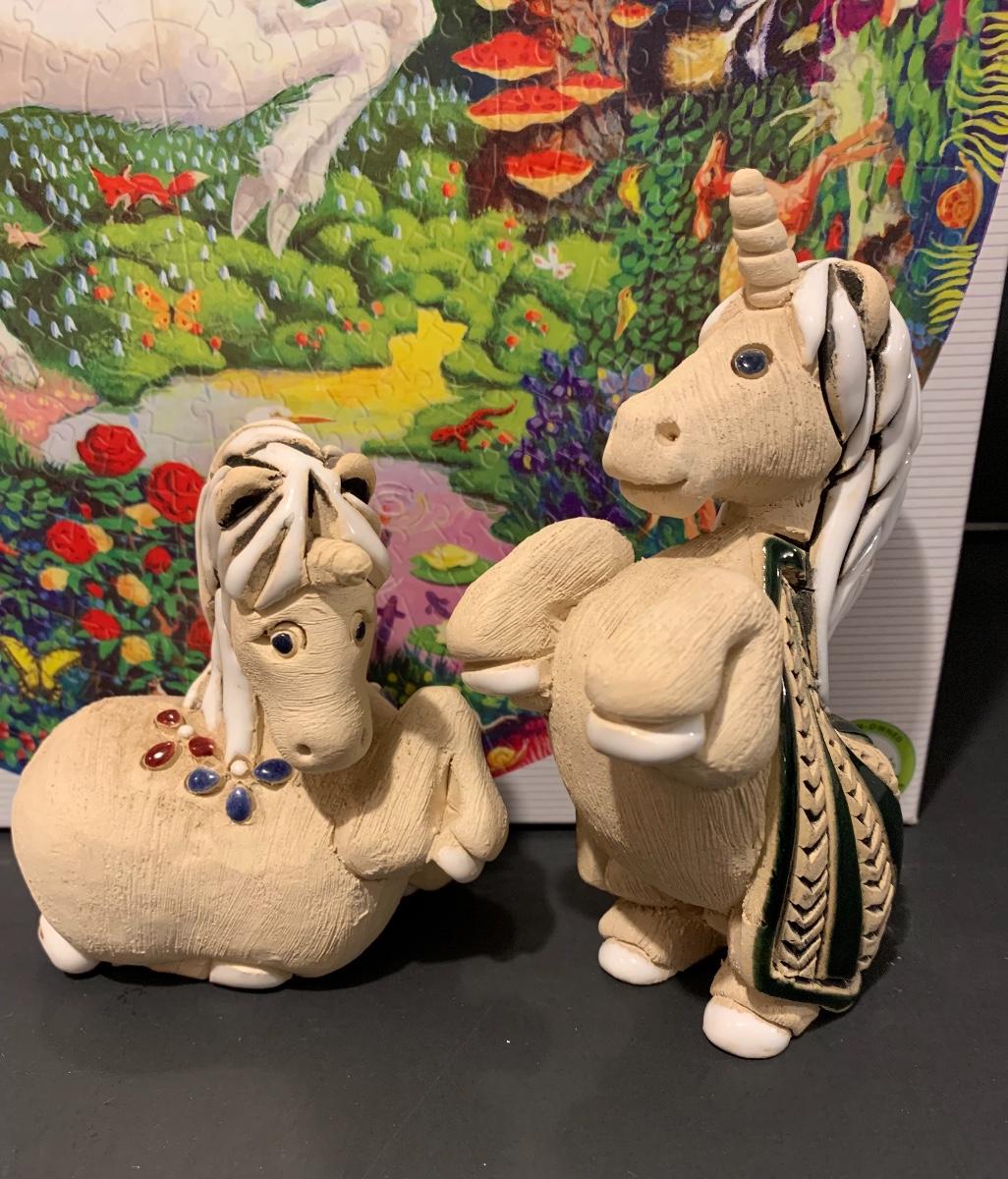 Lot 252 Whimsical Unicorns: Signed Pottery Figurines, New Puzzle, New Vintage Porcelain Unicorn Doll & More