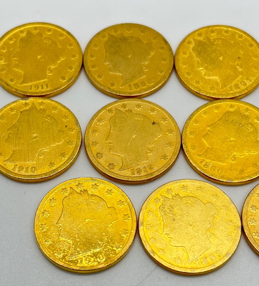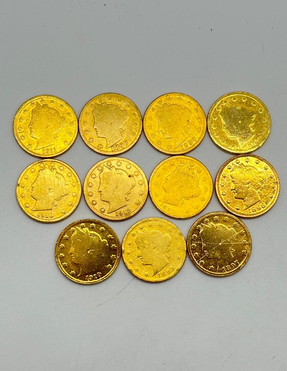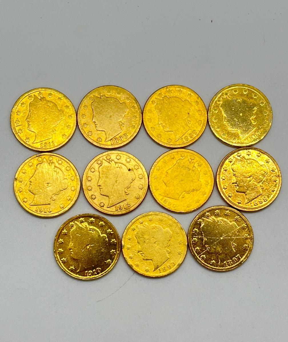LOT 252: Gold Plated Liberty "V" Nickels (11)