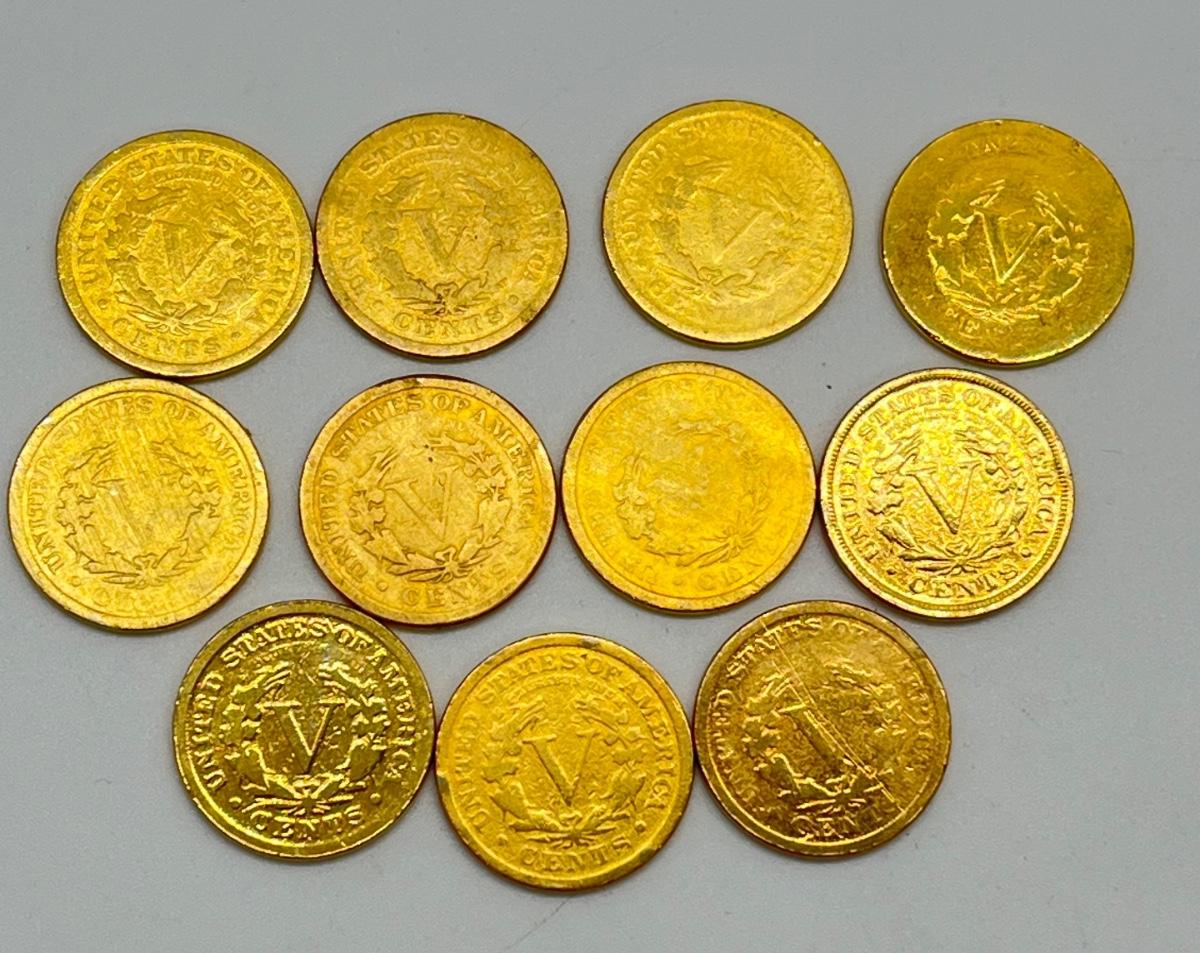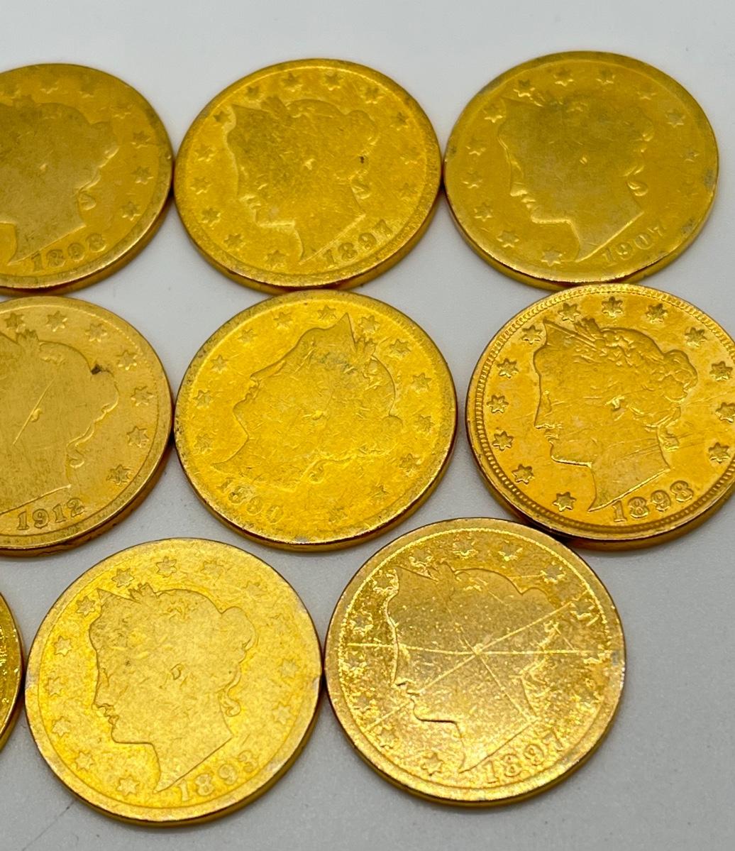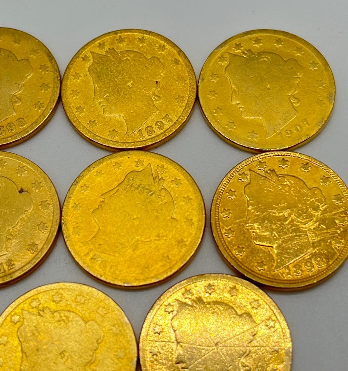 LOT 252: Gold Plated Liberty "V" Nickels (11)