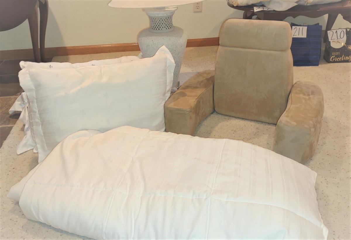 LOT 211 MASSAGING BACKREST, RALPH LAUREN PILLLOWS AND COMFORTER