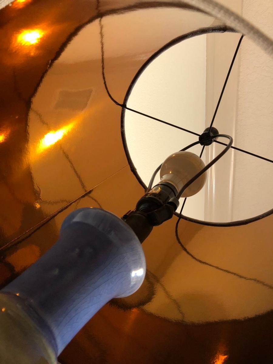 44" tall. Shade is copper-colored inside