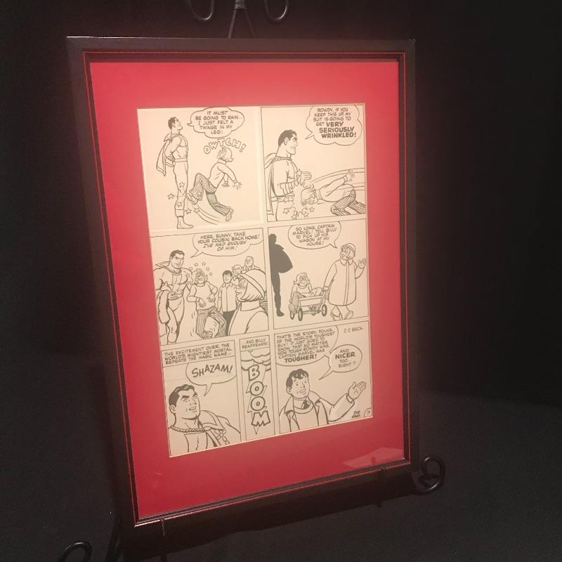 This Captain Marvel proof page appears to be the last page of a comic but we are unable to identify the issue. The piece measures 11” x 16” and is matted and framed in 15” x 21” frame. Shipping available. Please call UPS for a shipping quote prior to bidding.