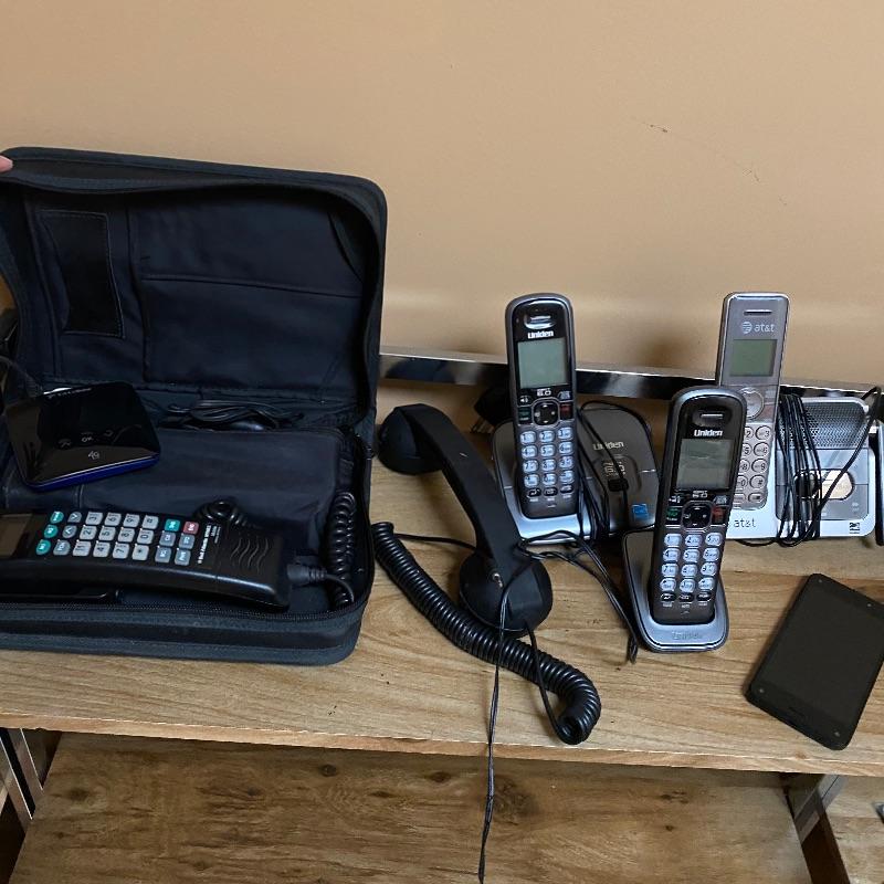 This lot has your communications covered. You’ve got a Uniden base and extra phone as well as an AT&T base for your landline. For your mobile phone we’ve got an Amazon Fire with 32GB capacity. No accessories are included but it appears to be brand new. There is also a plug in phone (for computer?) and old school Motorola/Bell Atlantic mobile phone in a case with a 12V Lead Battery with car lighter adapter. Lastly two Home Phone Connects from AT&T and Verizon. Shipping available.