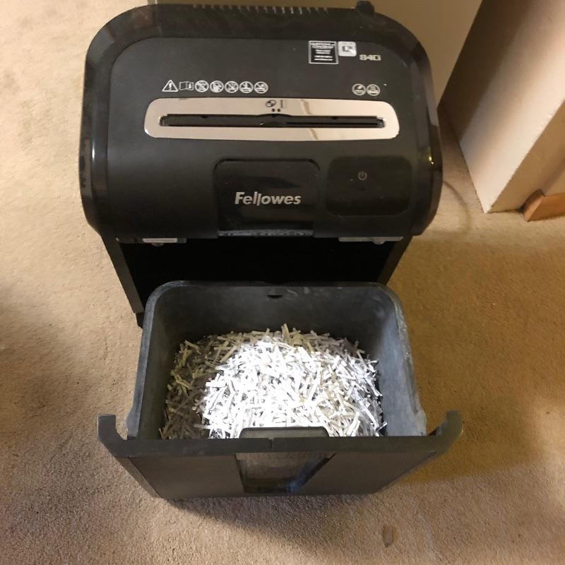 Heavy duty paper shredder that shreds CD’s and credit cards as well.