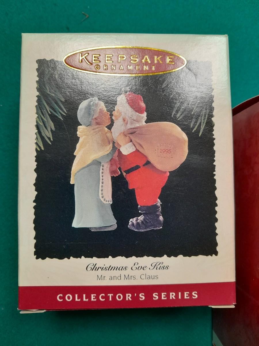 HALLMARK CHRISTMAS ORNAMENTS KRINGLES WHIRLGIG, SANTA'S BUMPER CAR AND MR. & MRS. CLAUS CHRISTMAS EVE KISS