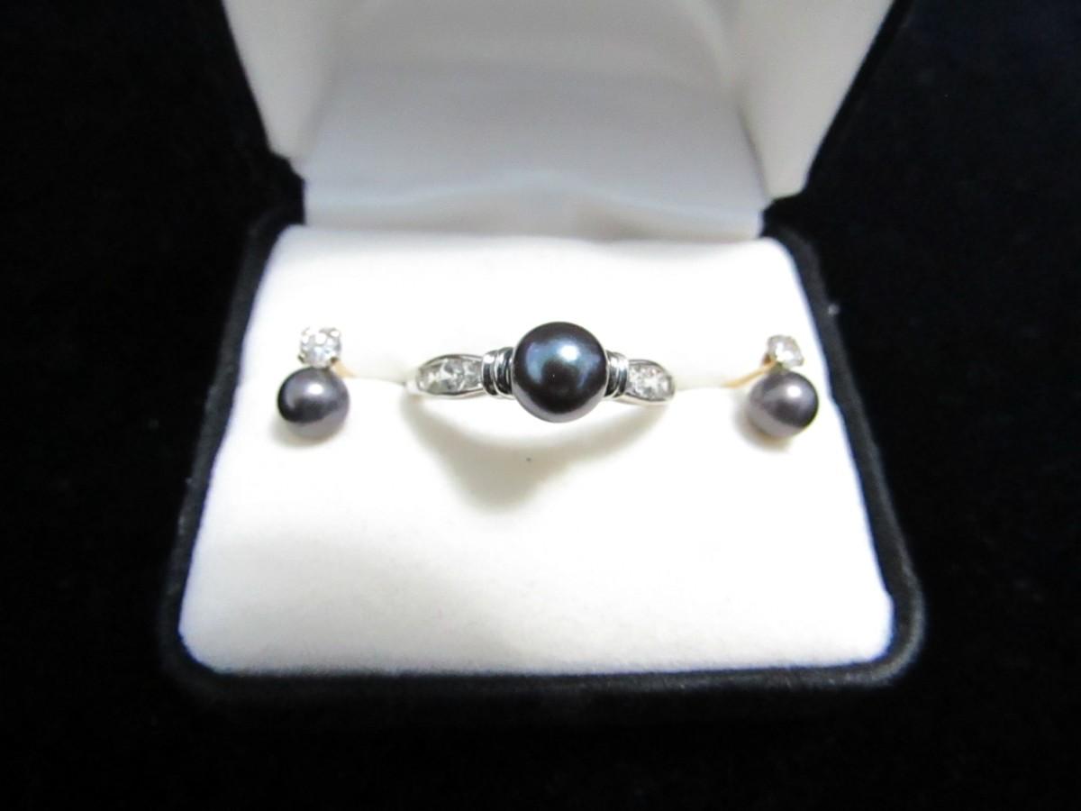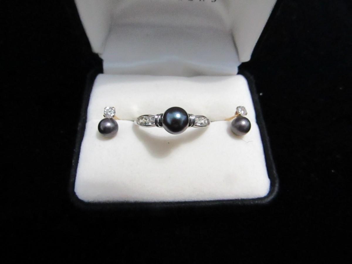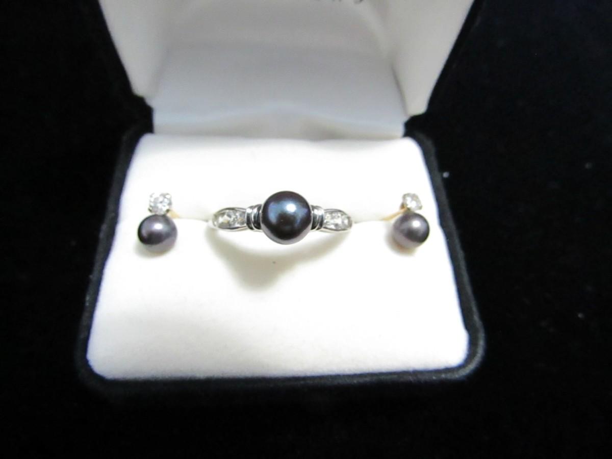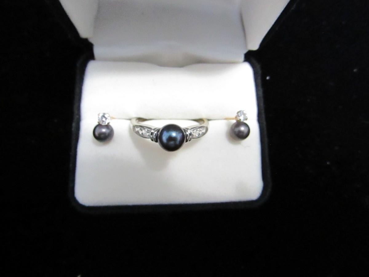 LOT 252 LADIES 14K WITH BLACK PEARL RING AND EARRINGS