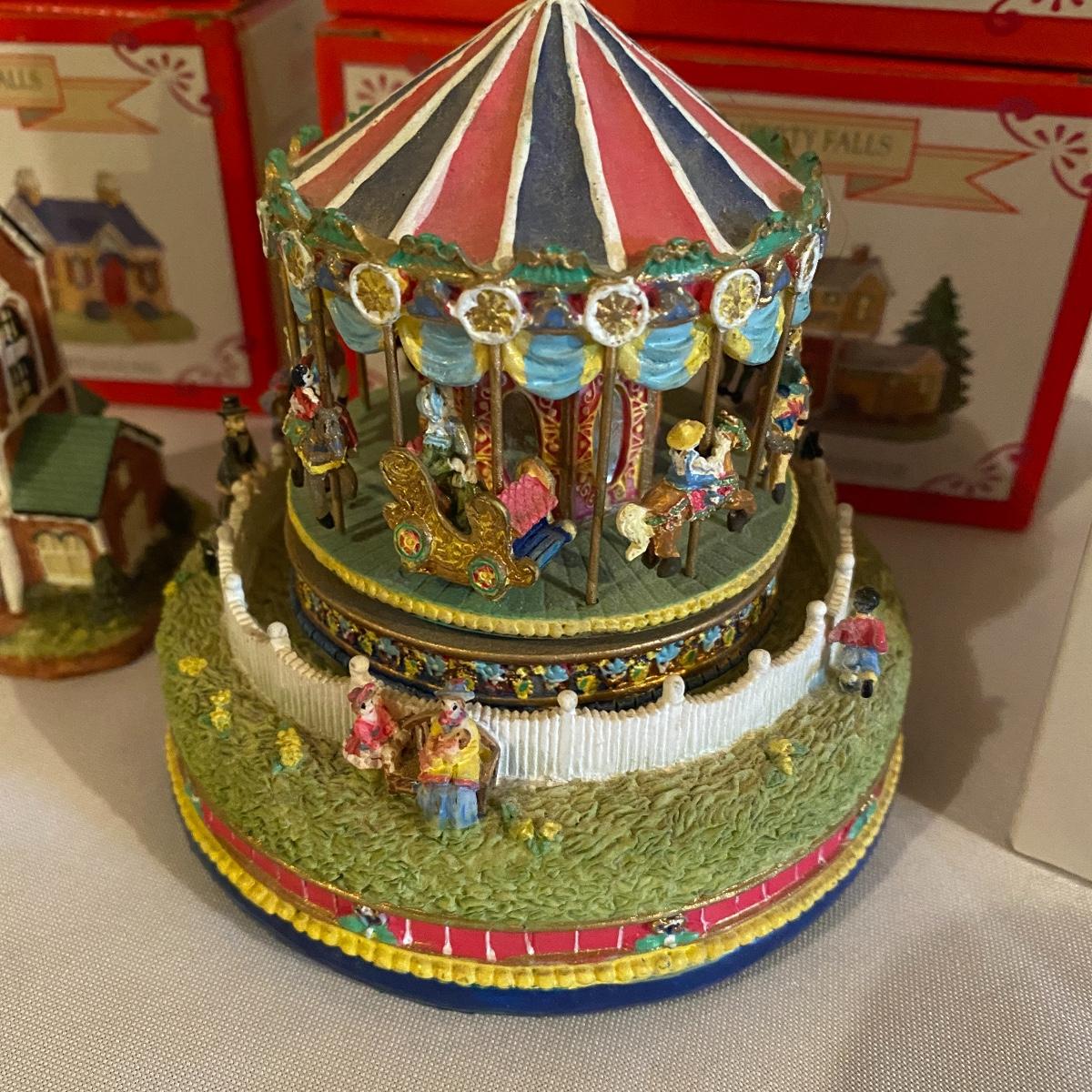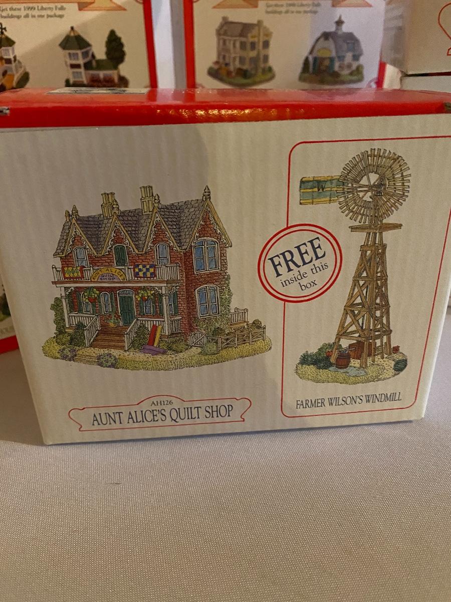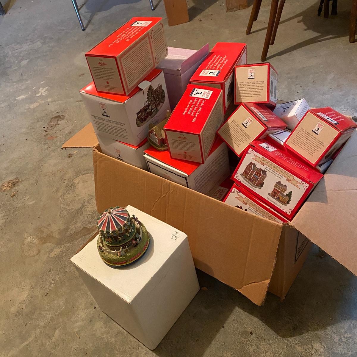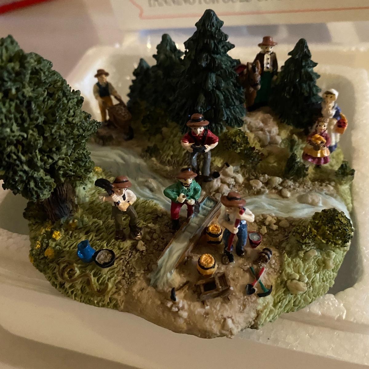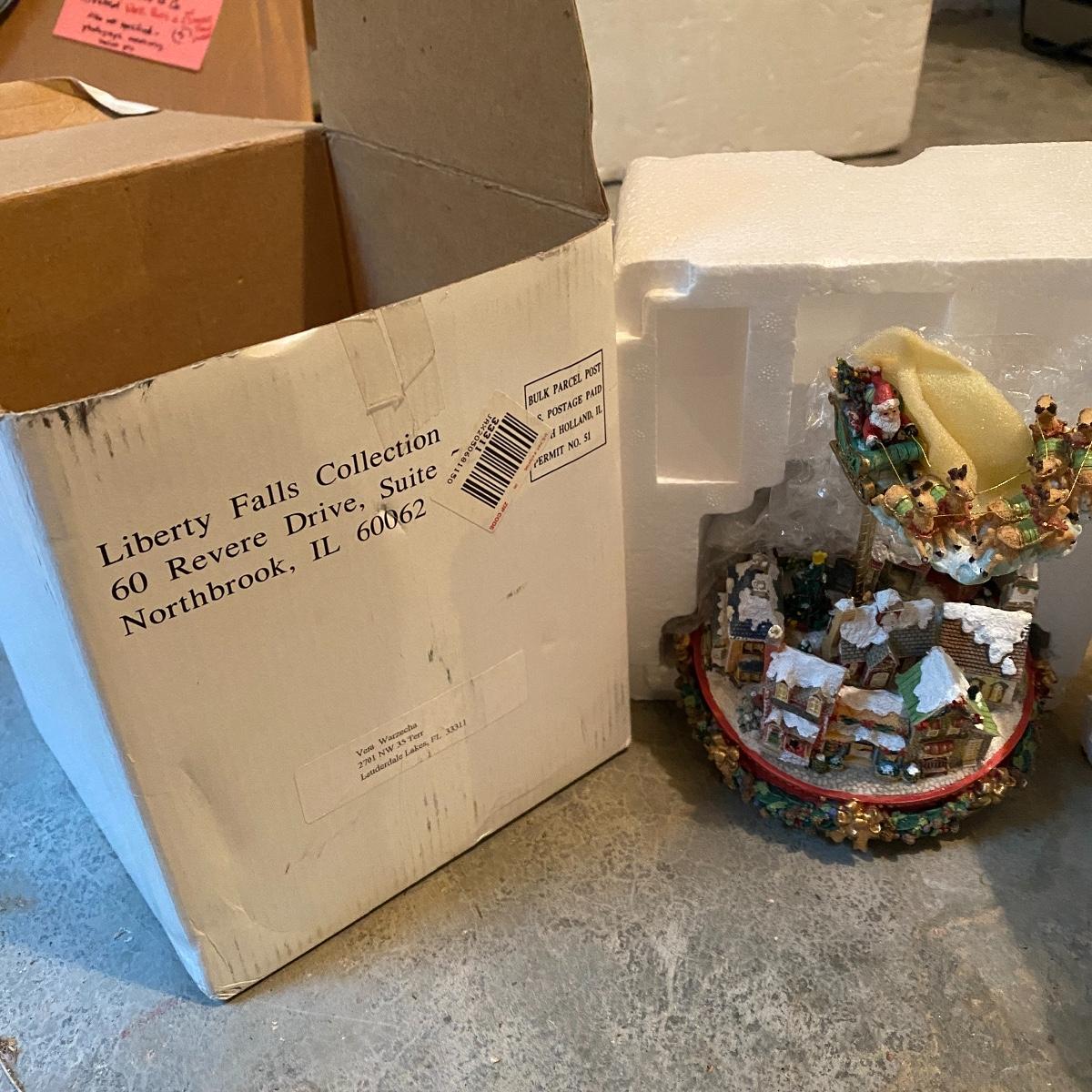 Collectible miniatures from Liberty Falls “All In One Collection “ with hand painted pewter figurines and the Americana Collection. There is also a Music Box!. The Liberty Falls collectible appear to be made of resin. Most come with original boxes. Too many to count! The Silver dollar in one box is a replica and not actual silver. While it appears that all the houses and boxes match we can not guarantee that all pieces are included. Shipping available
