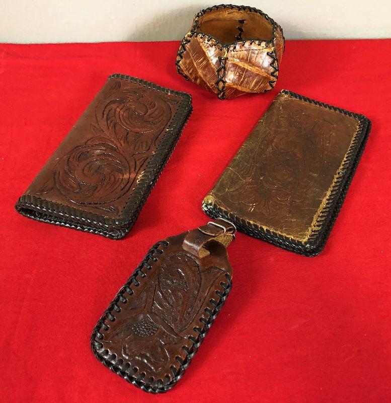 Lot 252 Lot of Leather items: Wallets, Luggage Ta