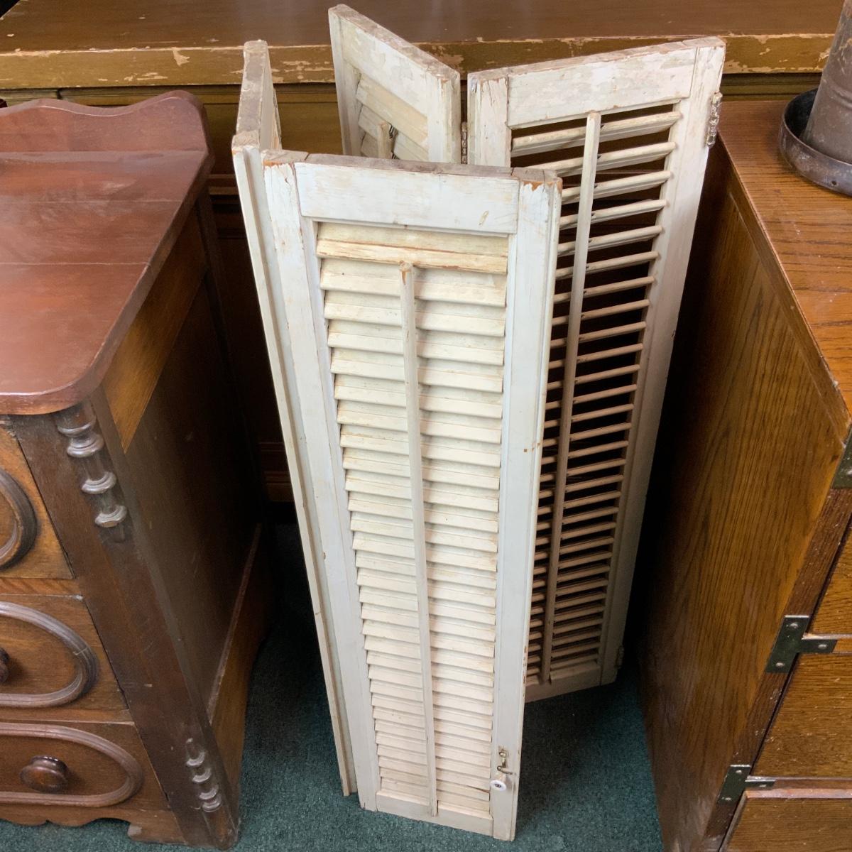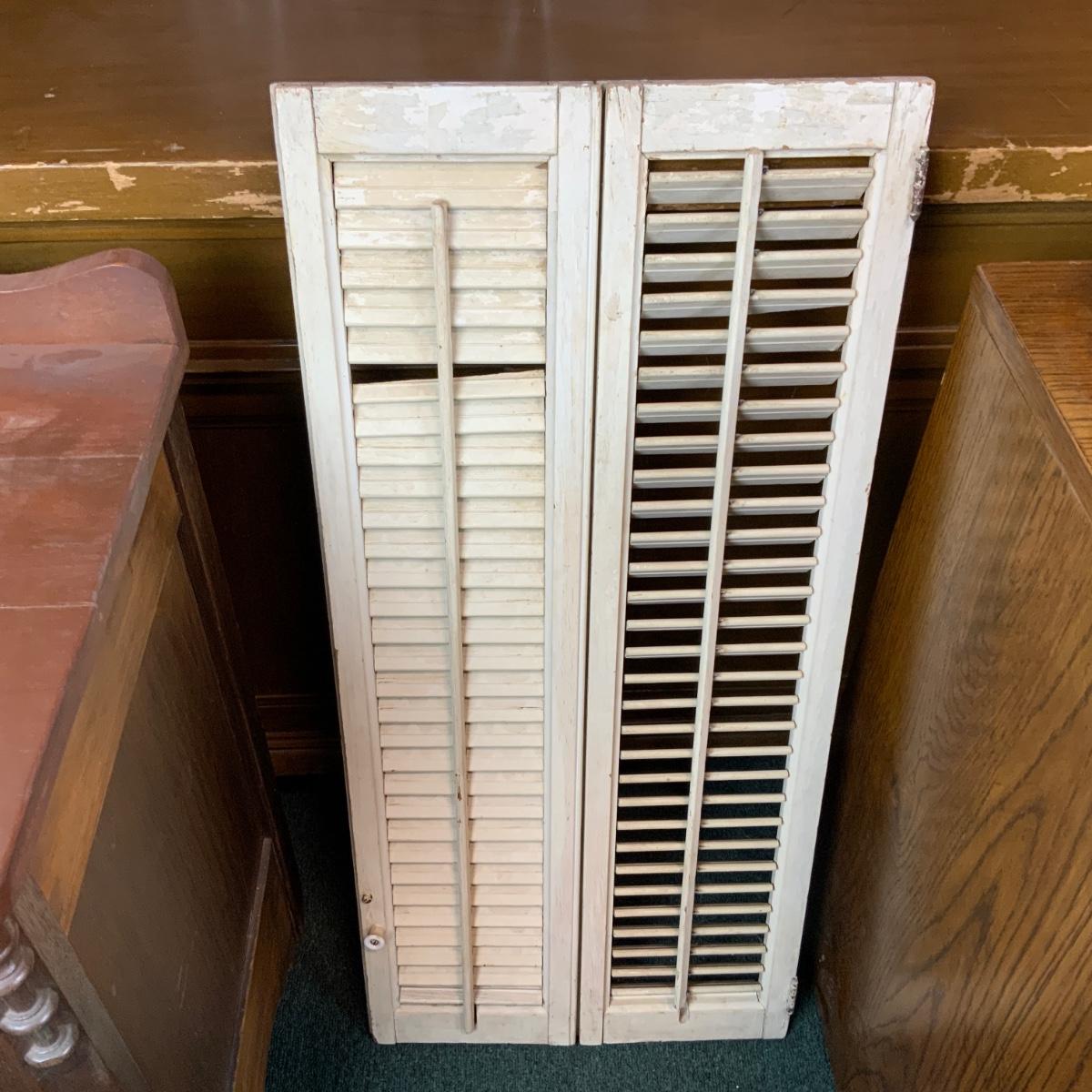 Pair of plantation shutters. Keep those nosy, neighbors out! //::\\ Please see photos for details and condition. No attempt has been made to hide any imperfections. All items listed in this auction are warehouse items, and need to be cleaned. A majority of the items need restoration as well. All items are sold AS IS and WITHOUT GUARANTEE. If you are uncertain about an item, DO NOT BID. Due to the nature of this online auction in-person inspection is HIGHLY recommended. All Sales are FINAL. Pick Up Times are FIRM. Please confirm with your own schedule that you can pick up in the scheduled times listed in the Terms and Conditions. Any questions please message the auctioneer. DO NOT Contact The Harp Gallery.