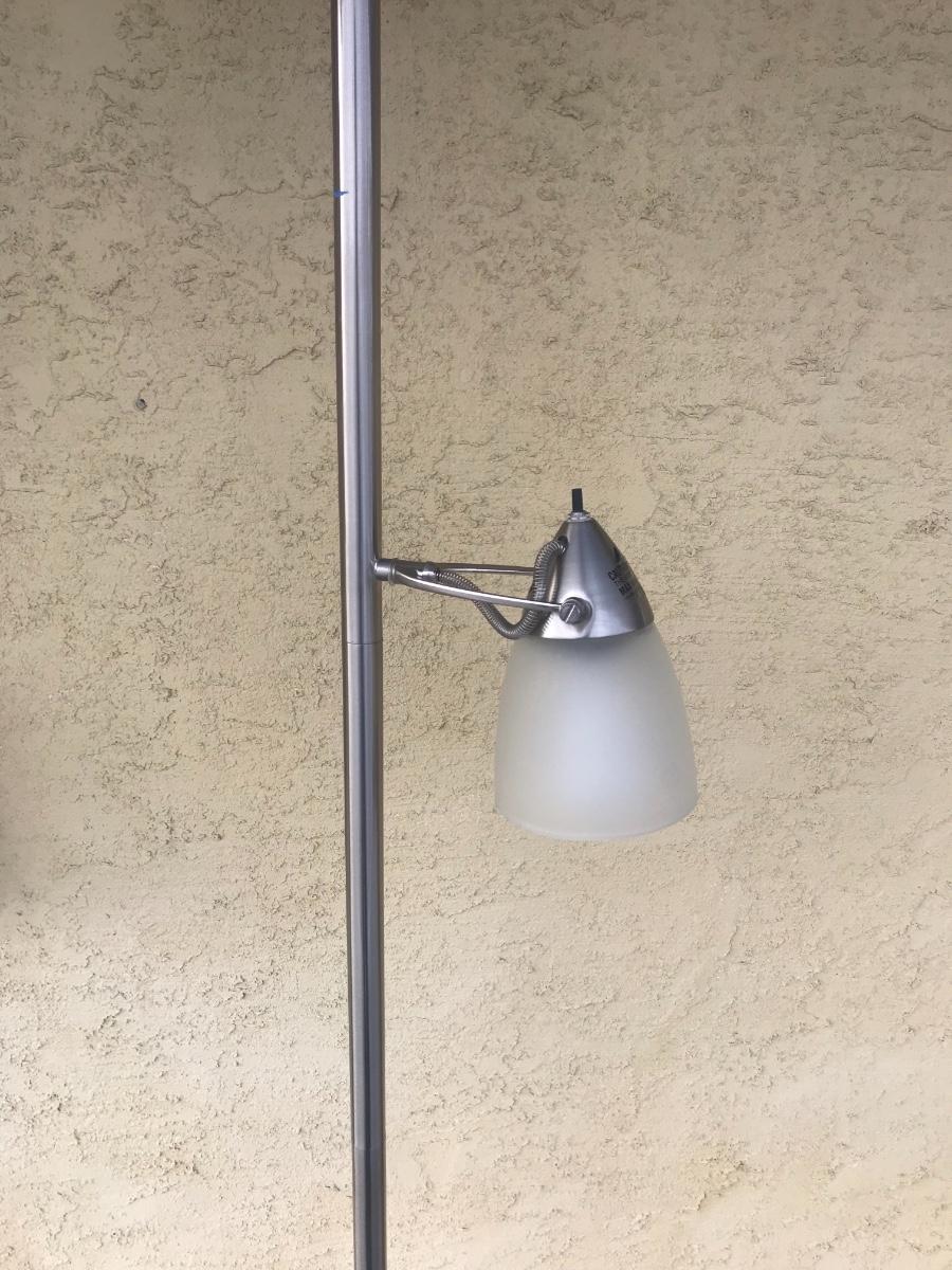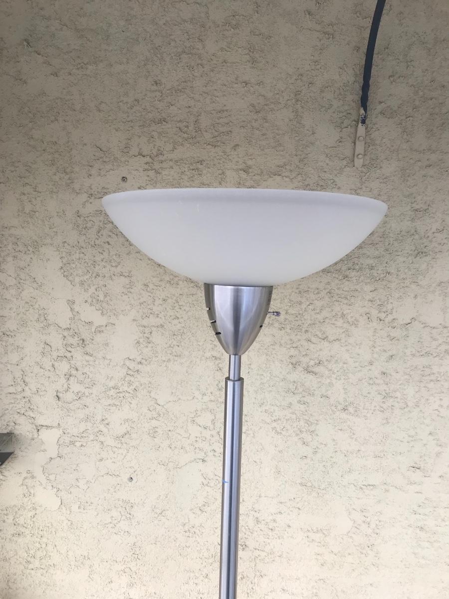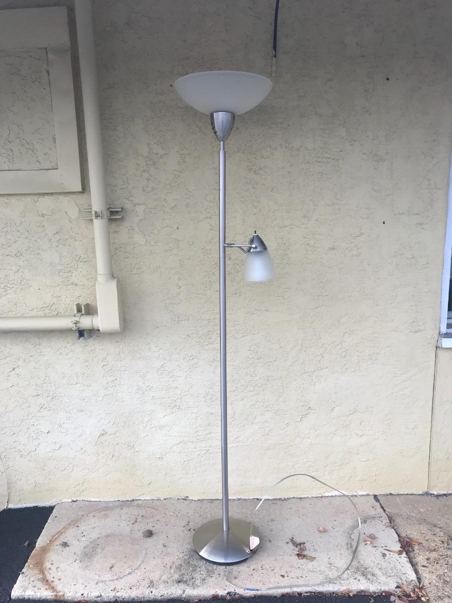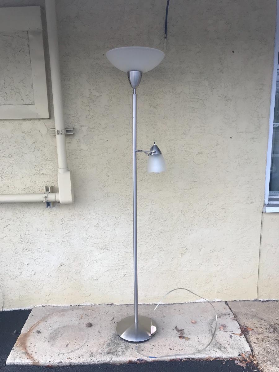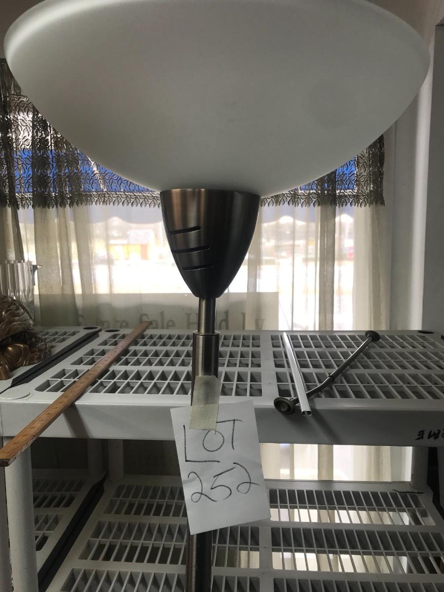 Silver And Glass Mother Daughter Torchiere Floor Lamp..Tested - both lights work. Has some dings and dents. Please see all pictures as they are the best representation of the items. The pictures show condition, measurements if taken, and what is included in the lot. Due to the large amount that we photograph and the time frame, we are not always able to take measurements. All items unless noted, are pre-owned and have been used. Please bring packing materials for your items. If you purchased furniture, you must bring help. We do not allow one person to carry large furniture out on their own. Bring help, tools and a truck for your personal safety. Company policy. Thank you.