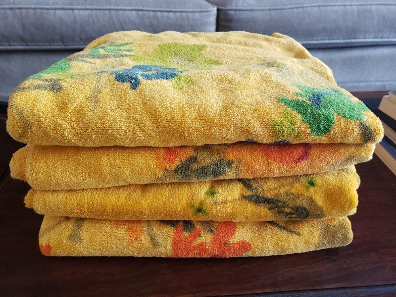 Lot 2-525: Mid Century Towels (4 total, 2 Orange & Red, 2 Blue & Green)