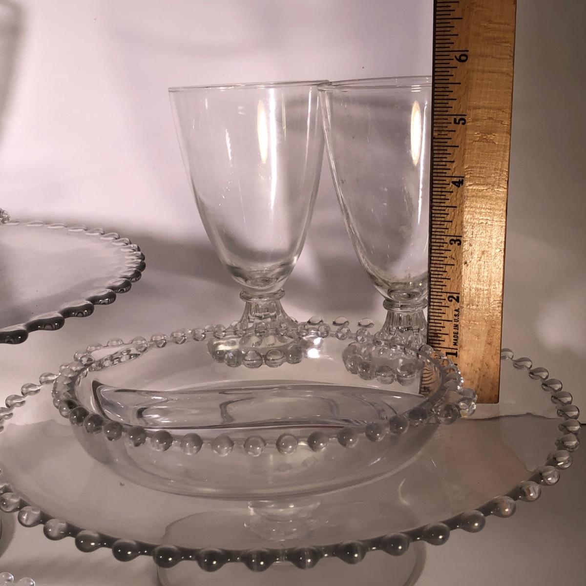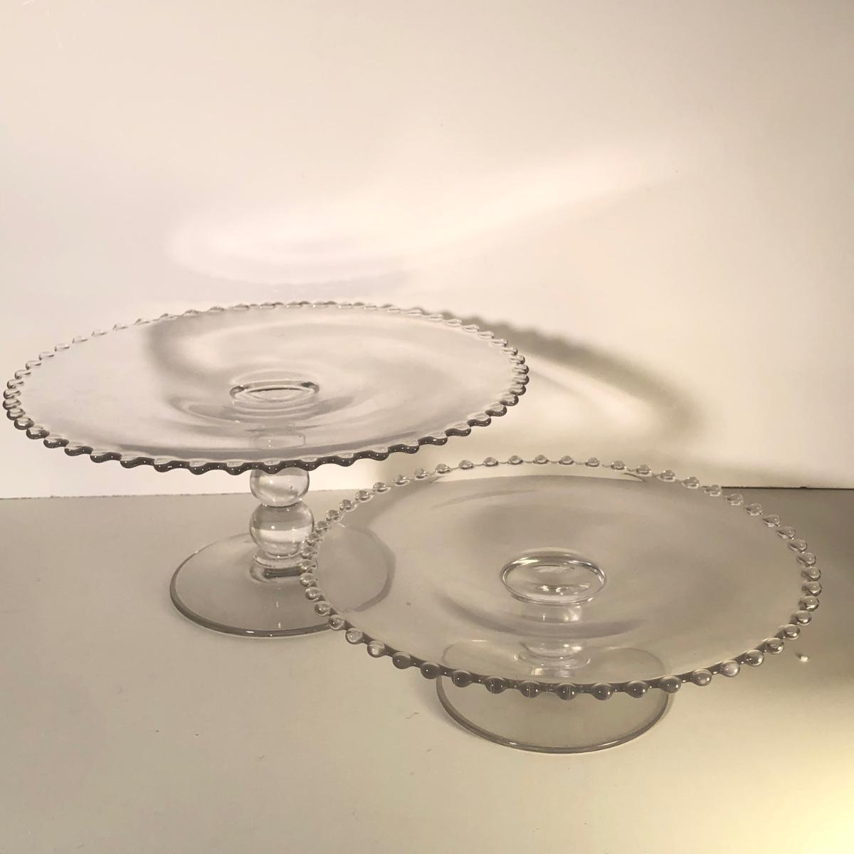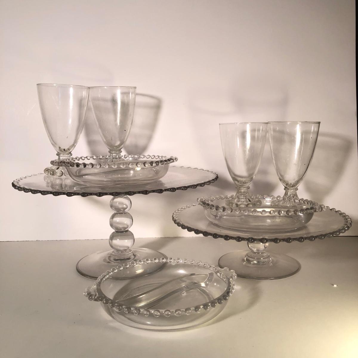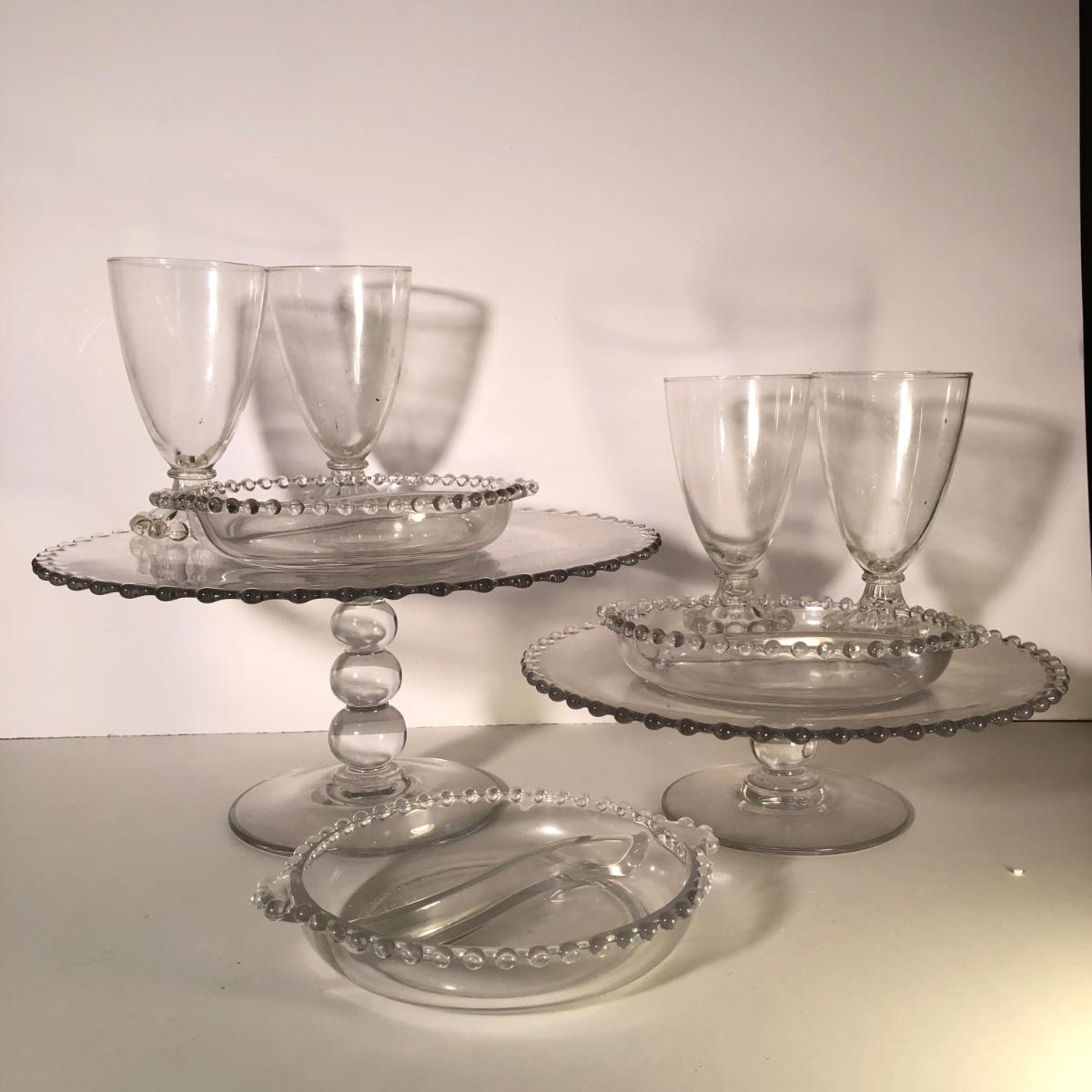 LOT 252F: Vintage Glass Cake Stands w/ Matching Dessert Dishes & Stemmed Glasses