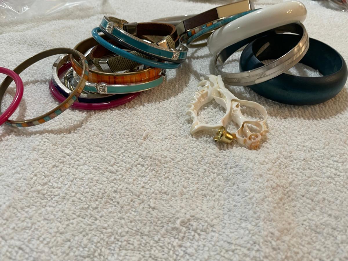 8. Sizes are approximate, you can estimate as our lot number signs are 3.5" long. Also we use an 18" & 36" measuring stick.  We try on certain things to do actual measurements. No guarantees on actual sizes, we try our best!