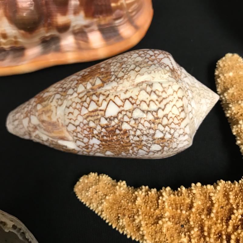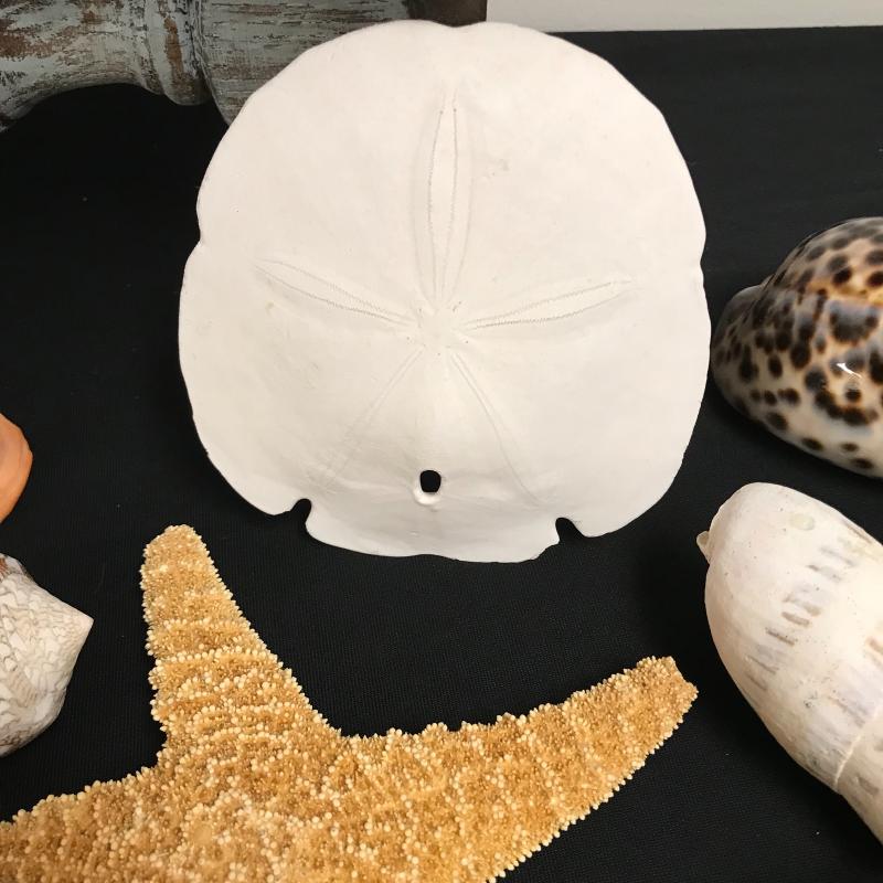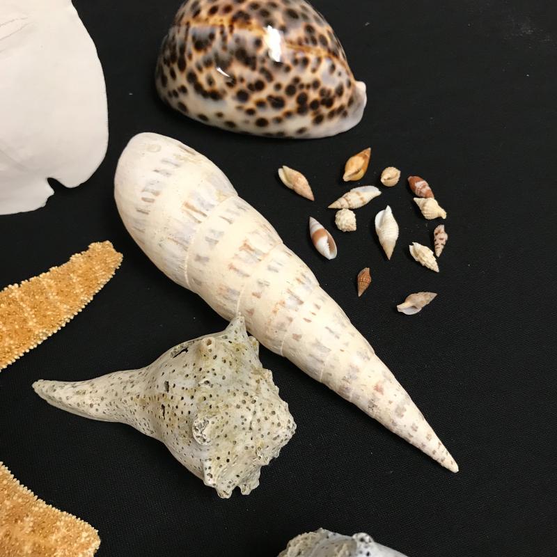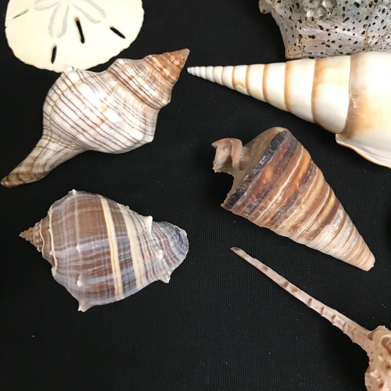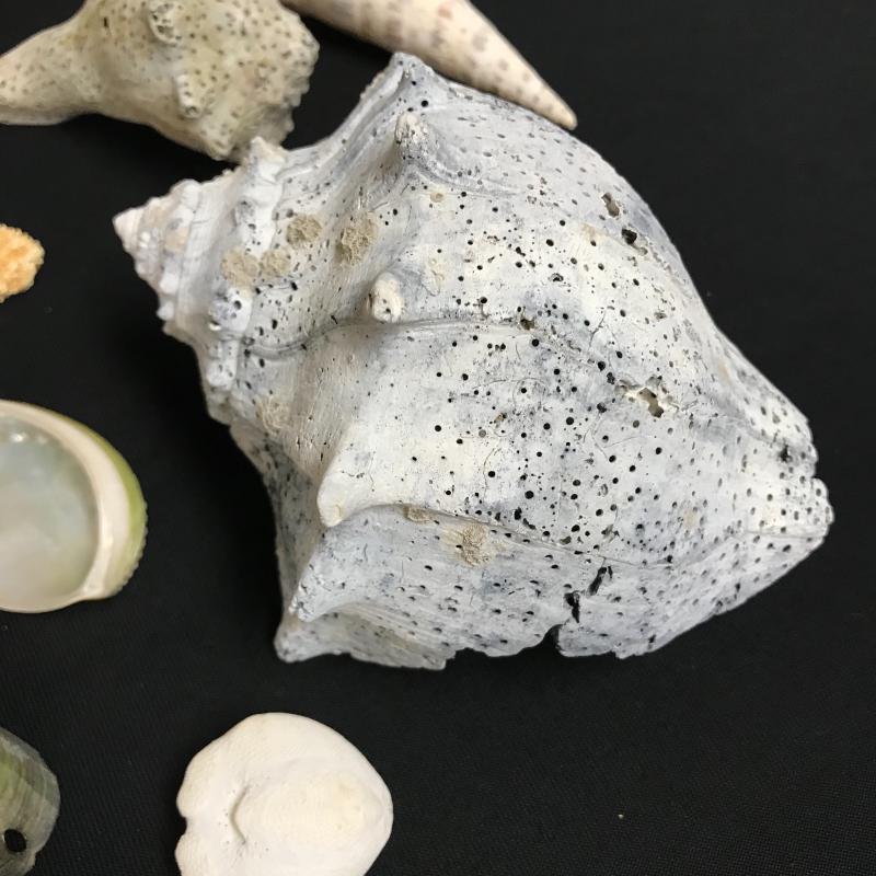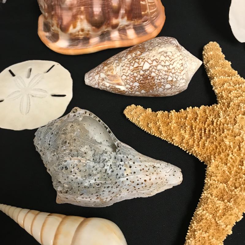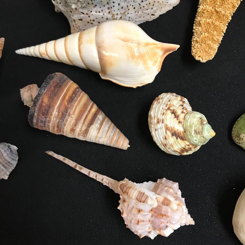 Lot includes dozens of gorgeous sea shells in great condition. Also includes shell stool/display shelf made by an artist who encased shells in concrete to make the top. Very unique piece. Heavy top rests on top of a wooden base. See pics. No shipping available. Local pickup only in Arden, NC.