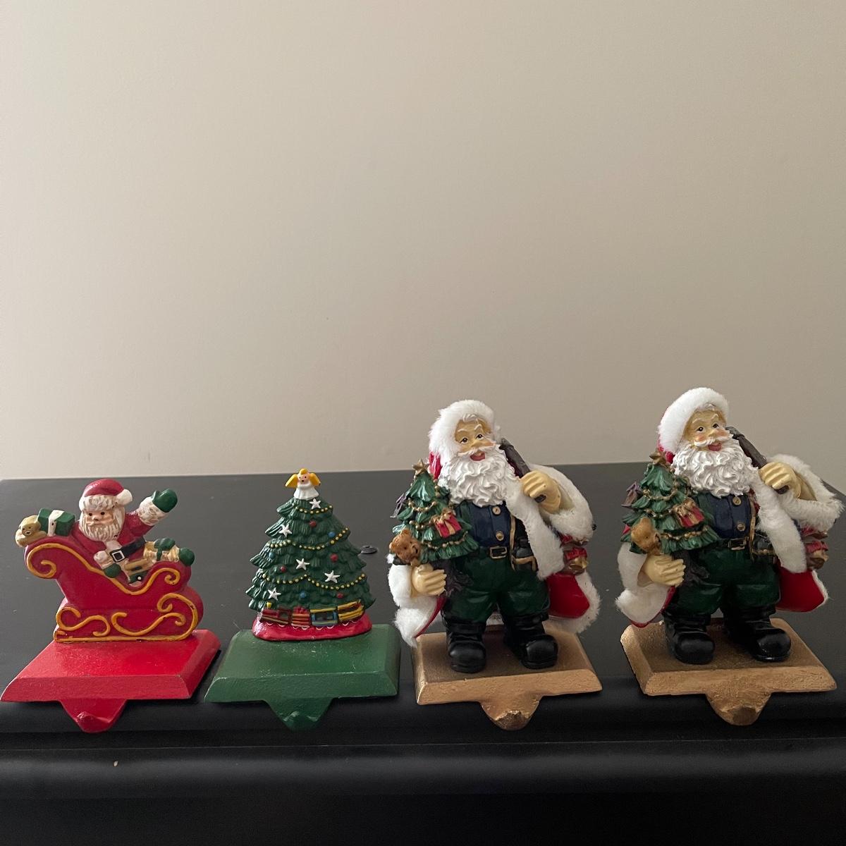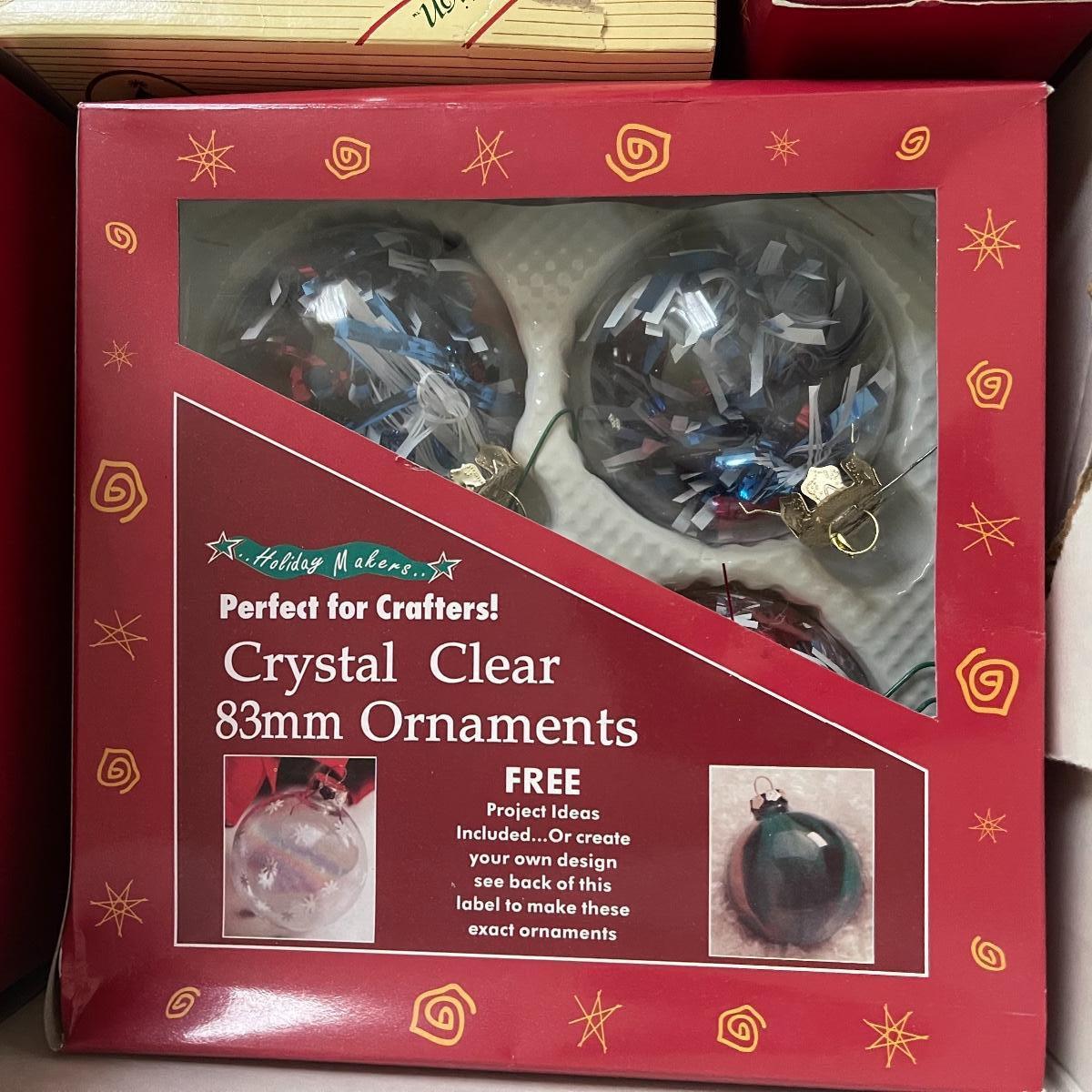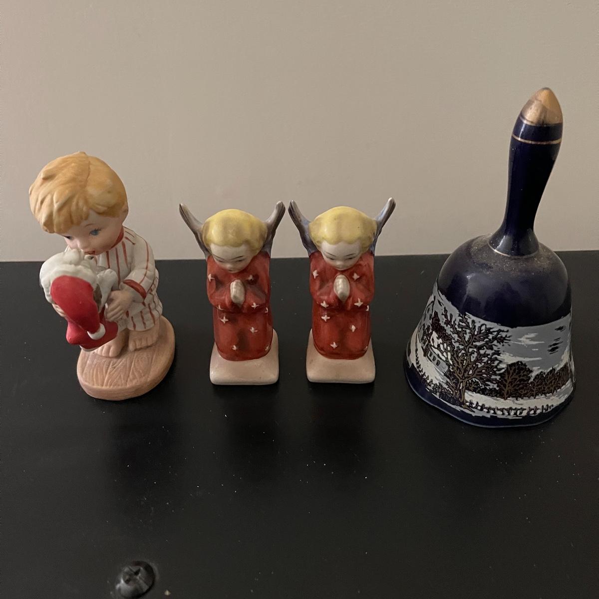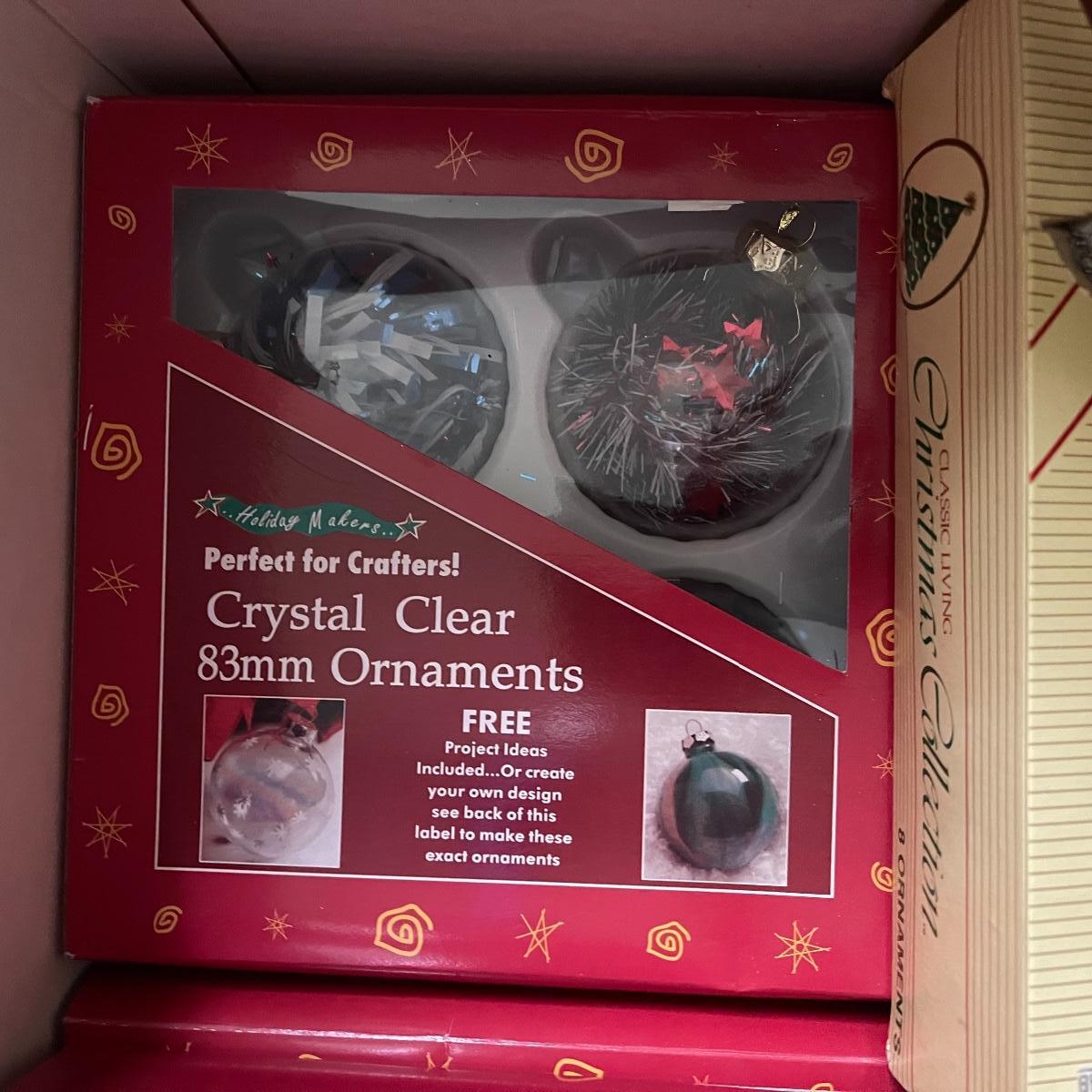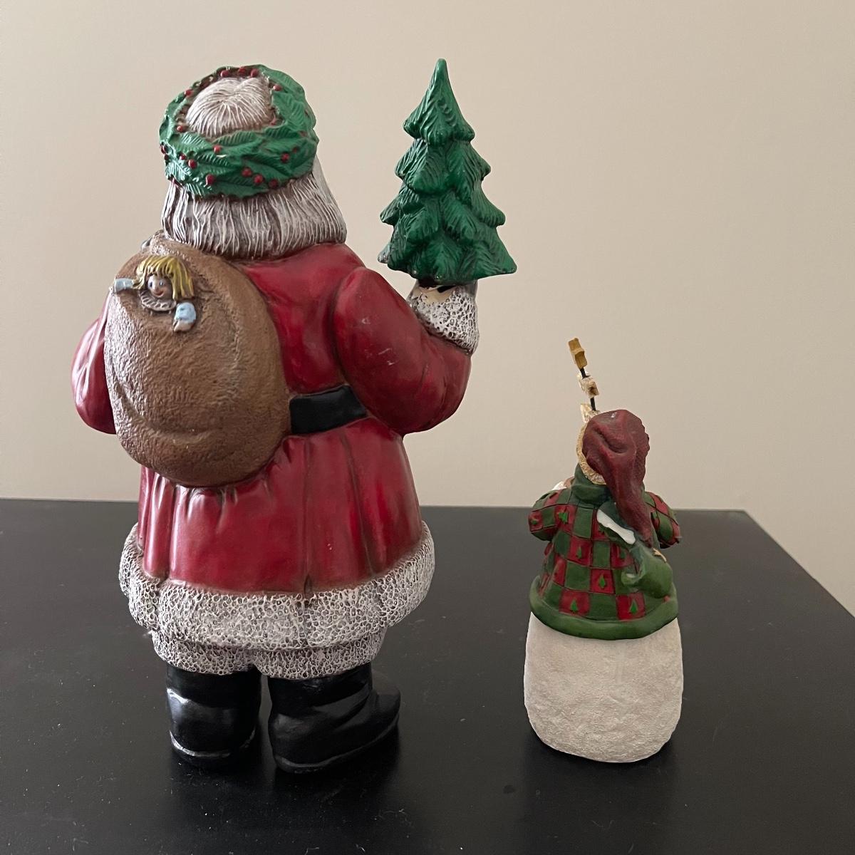 Christmas is coming early this year! This large Christmas lot includes a variety of Christmas decor, ornaments, table linens, candles, craft and baking books, stocking hangers, small baskets, and other items. The decorative ornaments of Santa Claus and more are lightweight and have glitter; the rest of the ornaments are an assortment of colored and clear spheres. There are three small tables that are 20” tall and have 8” x 8” tops. Each table displays different winter scenery. Five small decorative houses that state they are hand-painted and are from 1995 Santa’s Best, three glass hummingbird ornaments, “Angel of the Kitchen” Willow Tree figurine, and a selection of Santa figurines are all examples of the goodies in this lot.