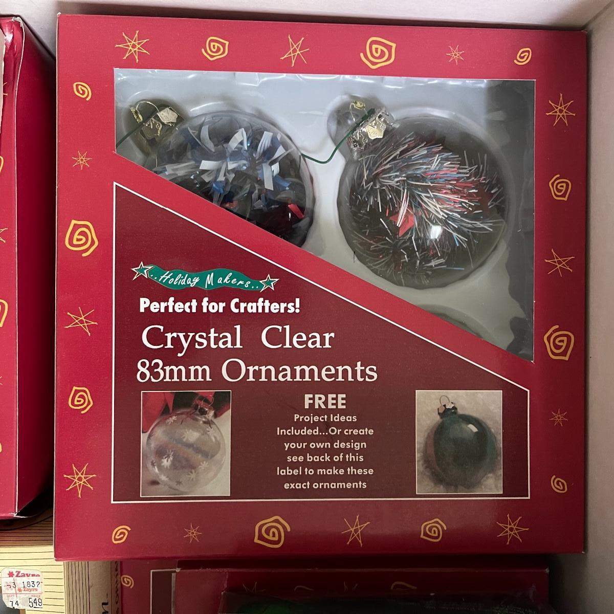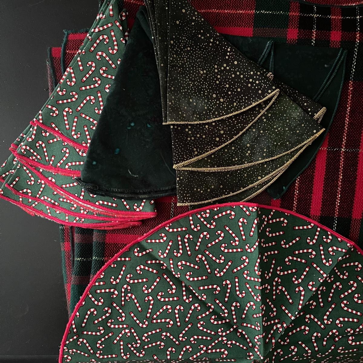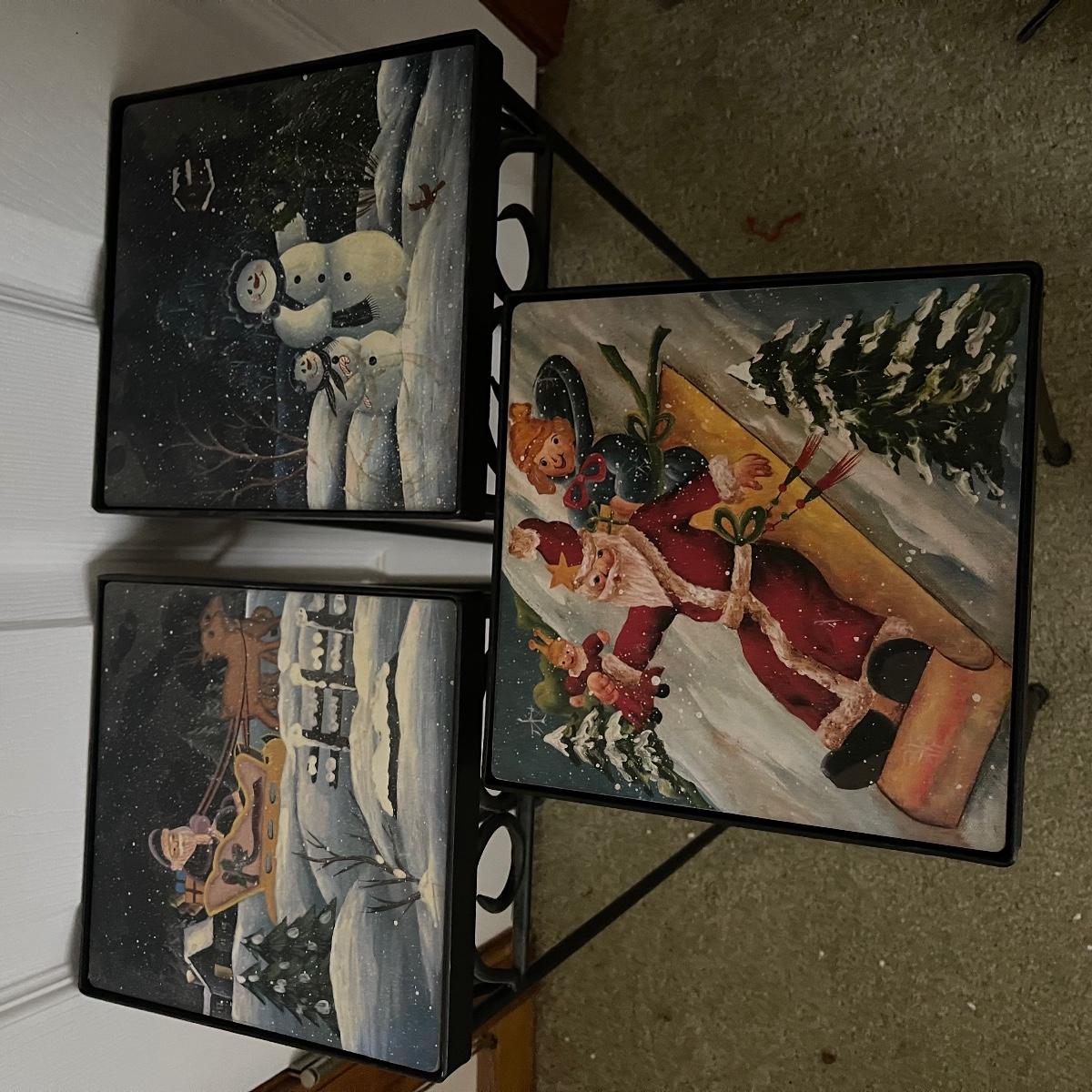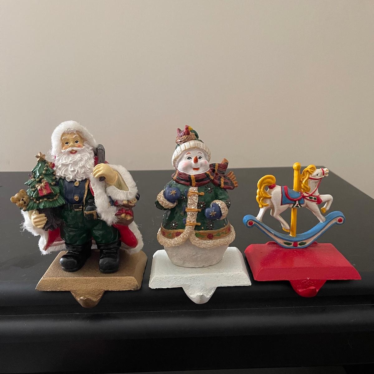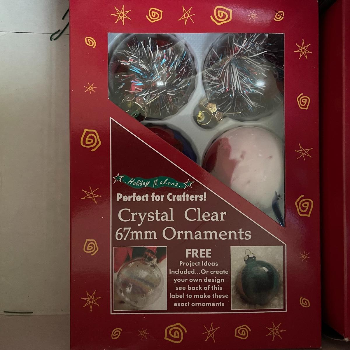 Christmas is coming early this year! This large Christmas lot includes a variety of Christmas decor, ornaments, table linens, candles, craft and baking books, stocking hangers, small baskets, and other items. The decorative ornaments of Santa Claus and more are lightweight and have glitter; the rest of the ornaments are an assortment of colored and clear spheres. There are three small tables that are 20” tall and have 8” x 8” tops. Each table displays different winter scenery. Five small decorative houses that state they are hand-painted and are from 1995 Santa’s Best, three glass hummingbird ornaments, “Angel of the Kitchen” Willow Tree figurine, and a selection of Santa figurines are all examples of the goodies in this lot.