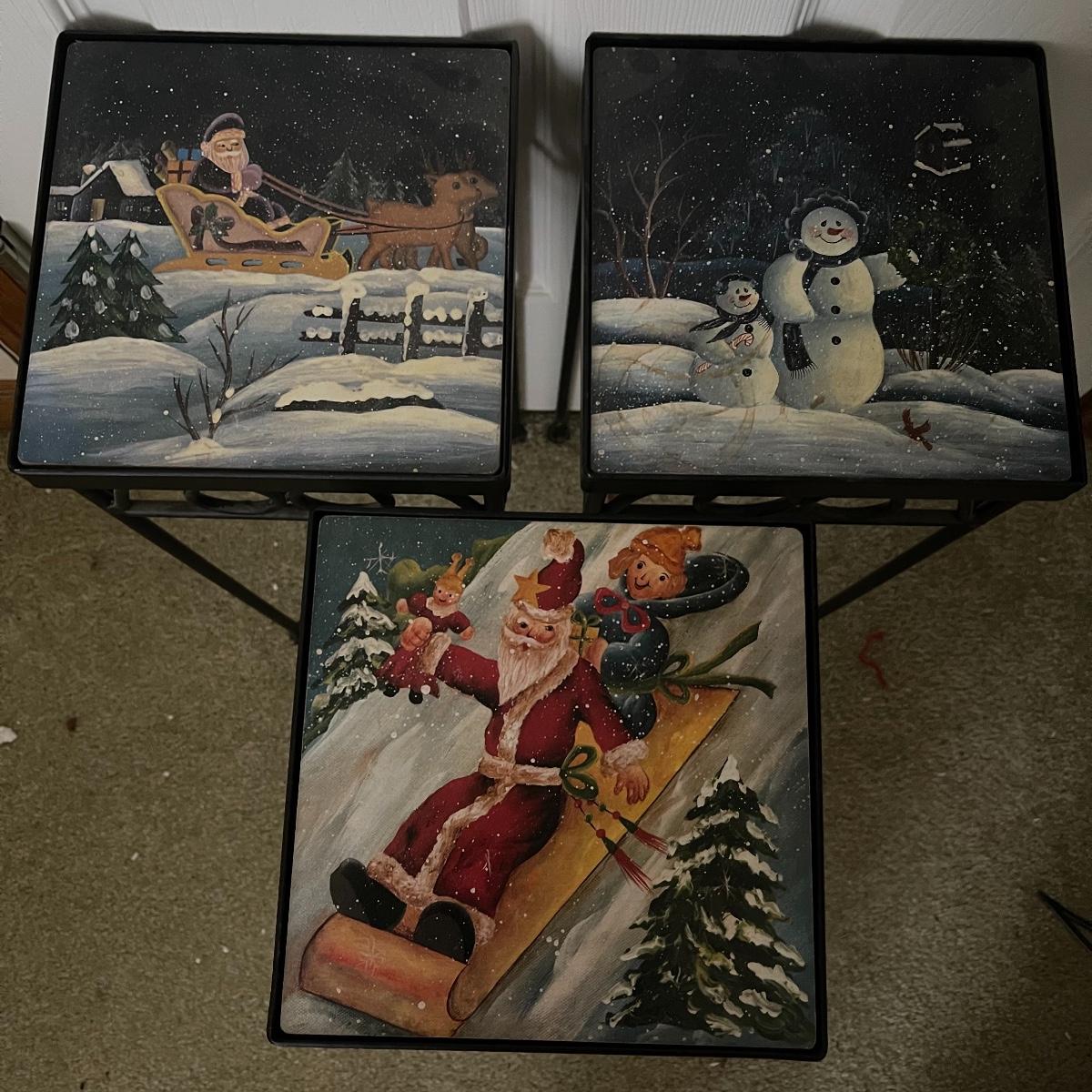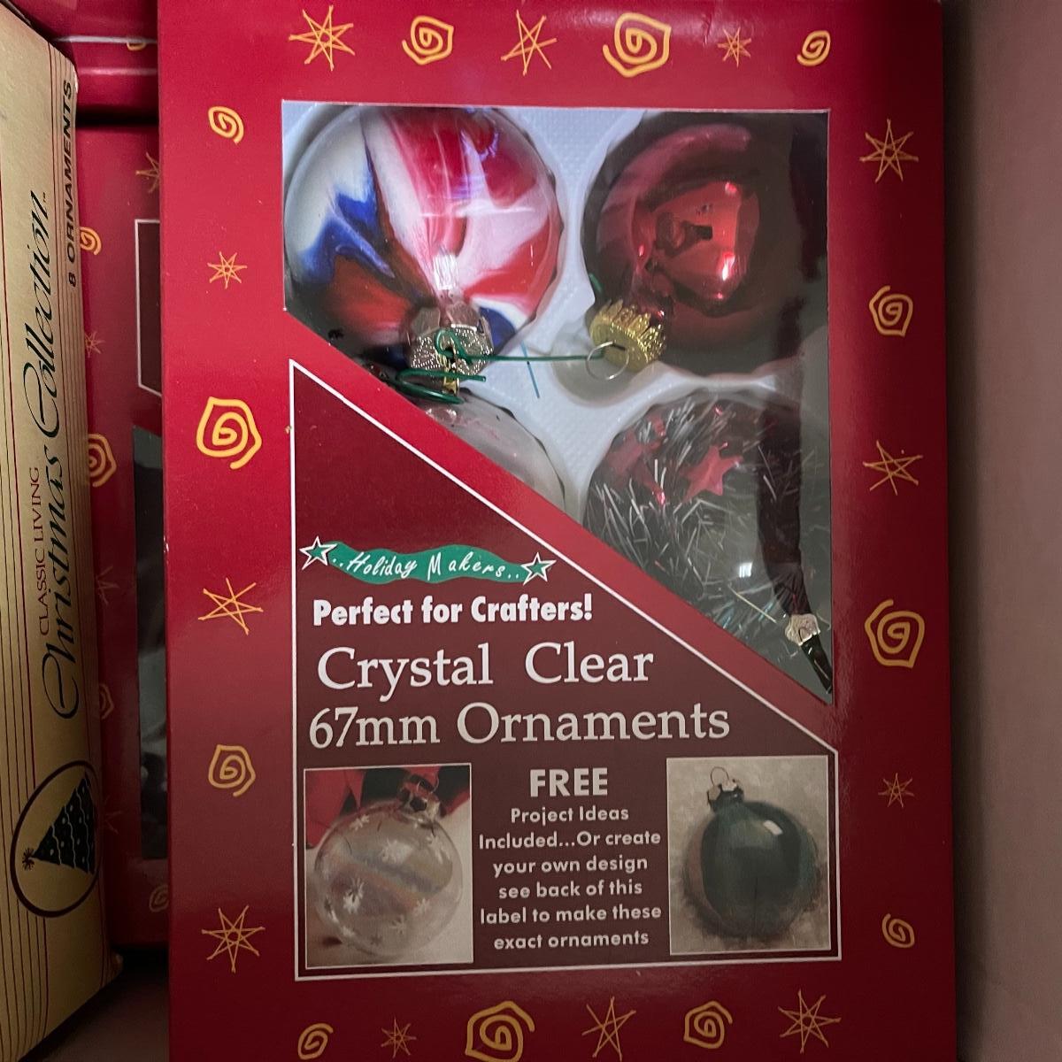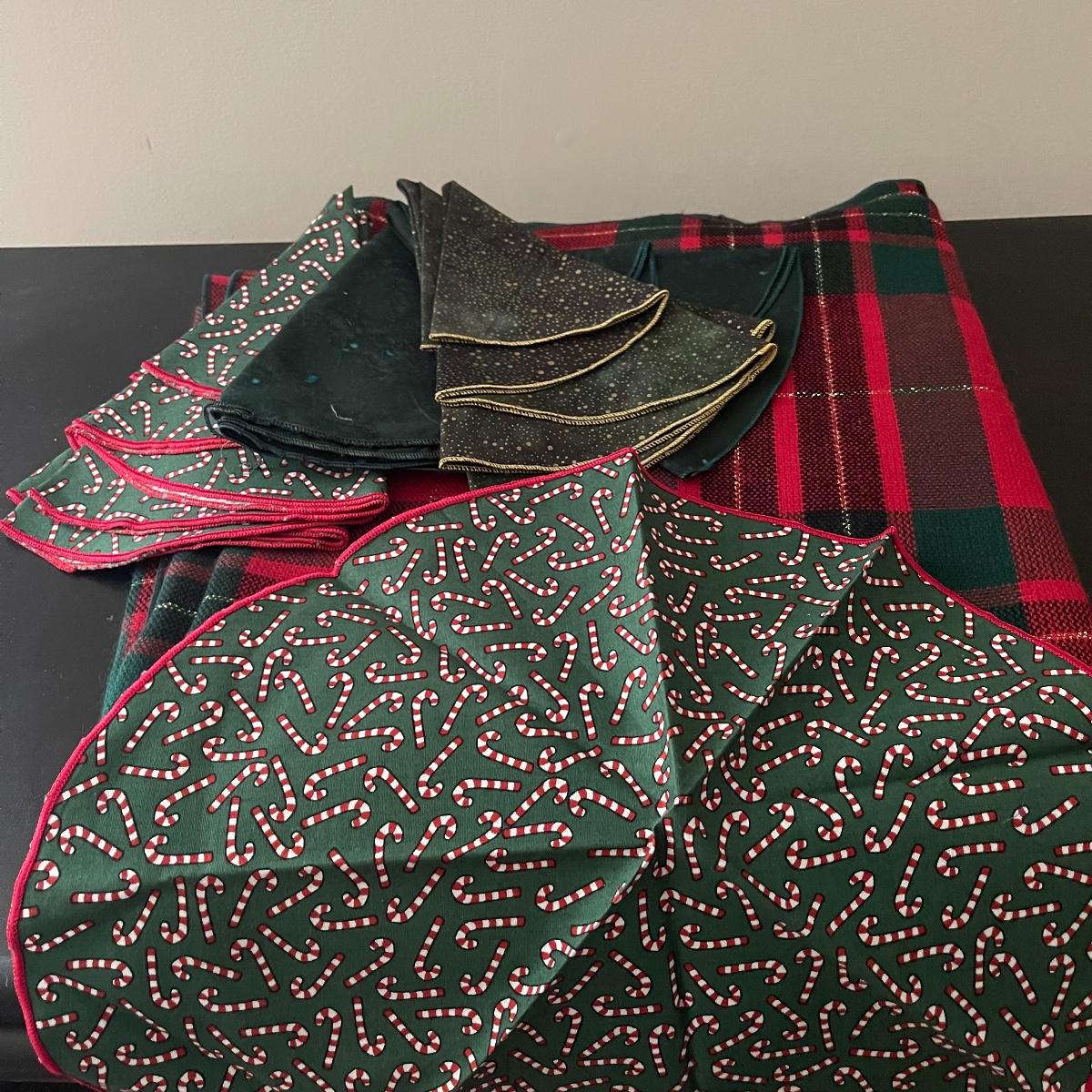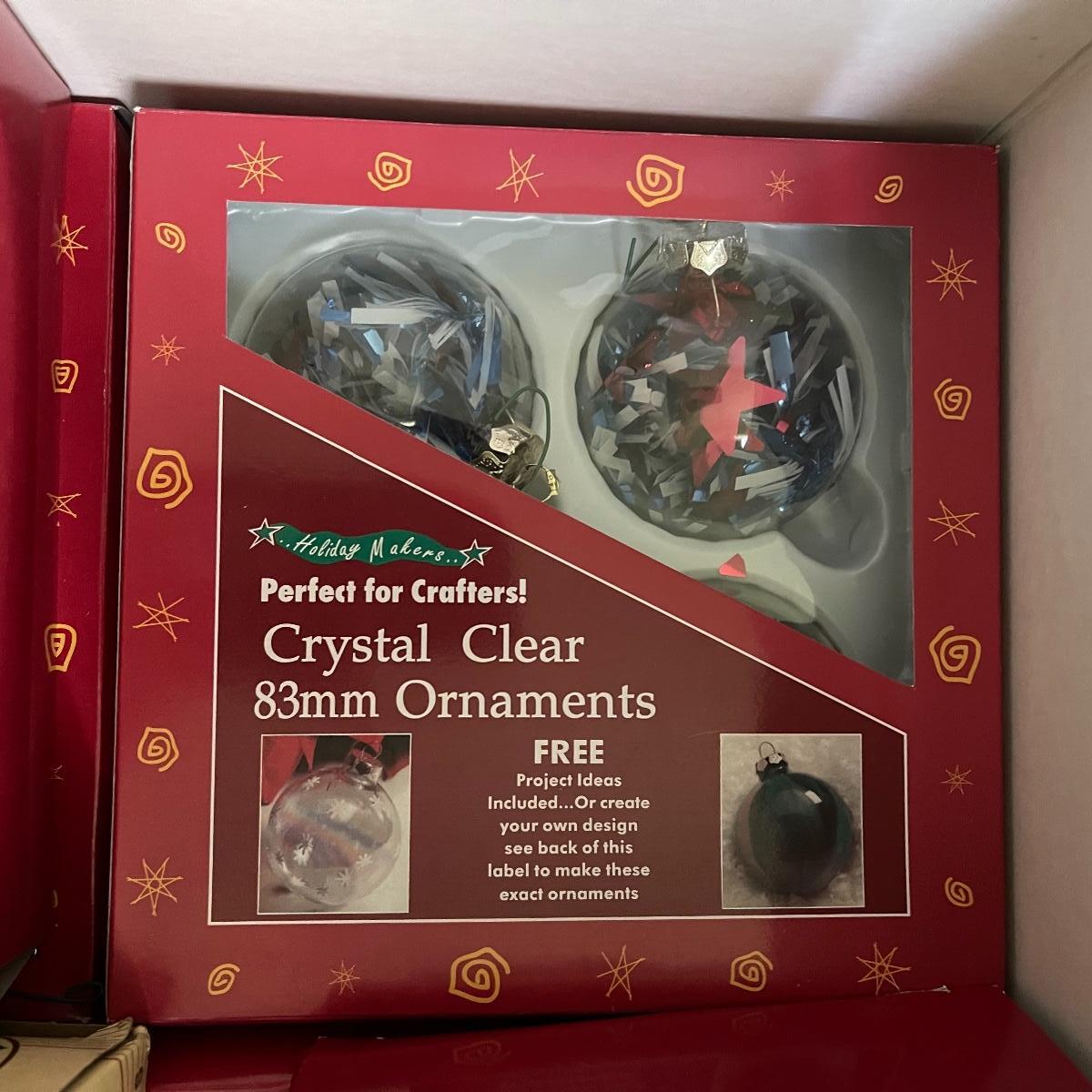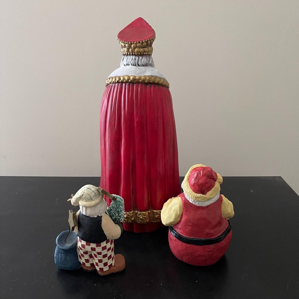 Christmas is coming early this year! This large Christmas lot includes a variety of Christmas decor, ornaments, table linens, candles, craft and baking books, stocking hangers, small baskets, and other items. The decorative ornaments of Santa Claus and more are lightweight and have glitter; the rest of the ornaments are an assortment of colored and clear spheres. There are three small tables that are 20” tall and have 8” x 8” tops. Each table displays different winter scenery. Five small decorative houses that state they are hand-painted and are from 1995 Santa’s Best, three glass hummingbird ornaments, “Angel of the Kitchen” Willow Tree figurine, and a selection of Santa figurines are all examples of the goodies in this lot.