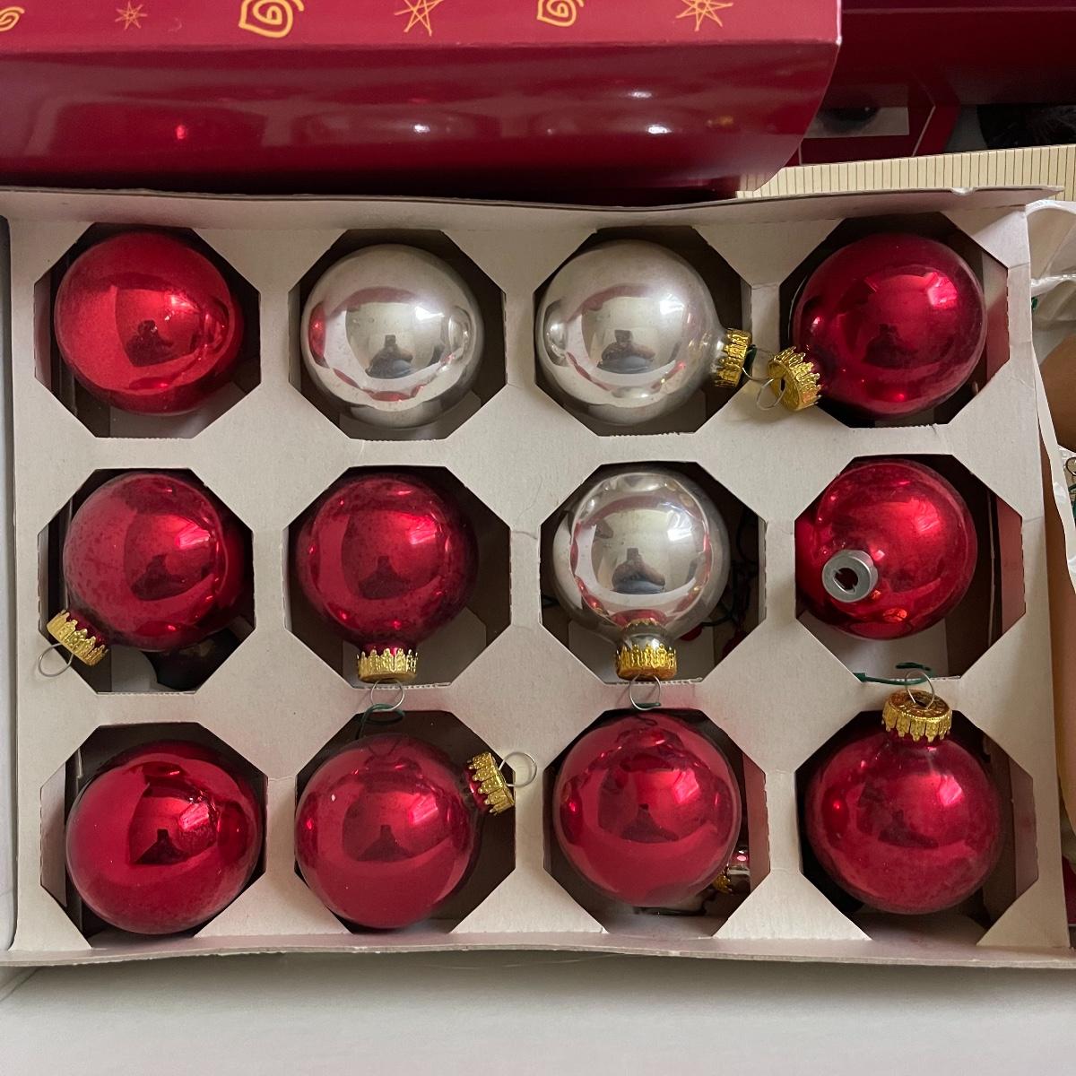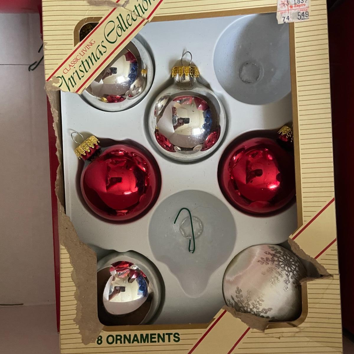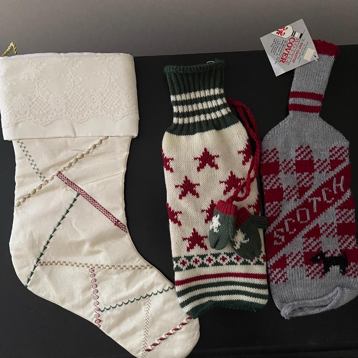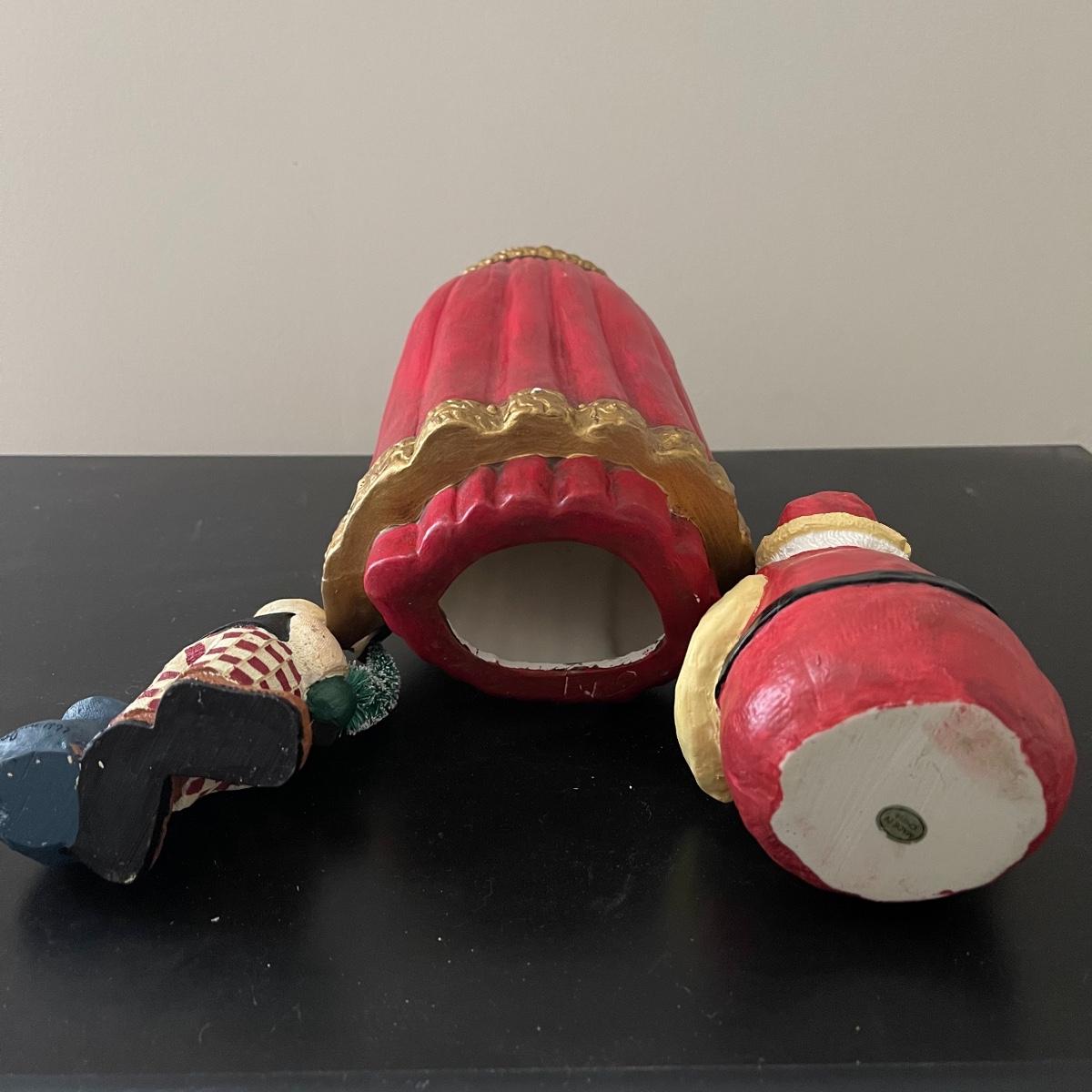 Christmas is coming early this year! This large Christmas lot includes a variety of Christmas decor, ornaments, table linens, candles, craft and baking books, stocking hangers, small baskets, and other items. The decorative ornaments of Santa Claus and more are lightweight and have glitter; the rest of the ornaments are an assortment of colored and clear spheres. There are three small tables that are 20” tall and have 8” x 8” tops. Each table displays different winter scenery. Five small decorative houses that state they are hand-painted and are from 1995 Santa’s Best, three glass hummingbird ornaments, “Angel of the Kitchen” Willow Tree figurine, and a selection of Santa figurines are all examples of the goodies in this lot.