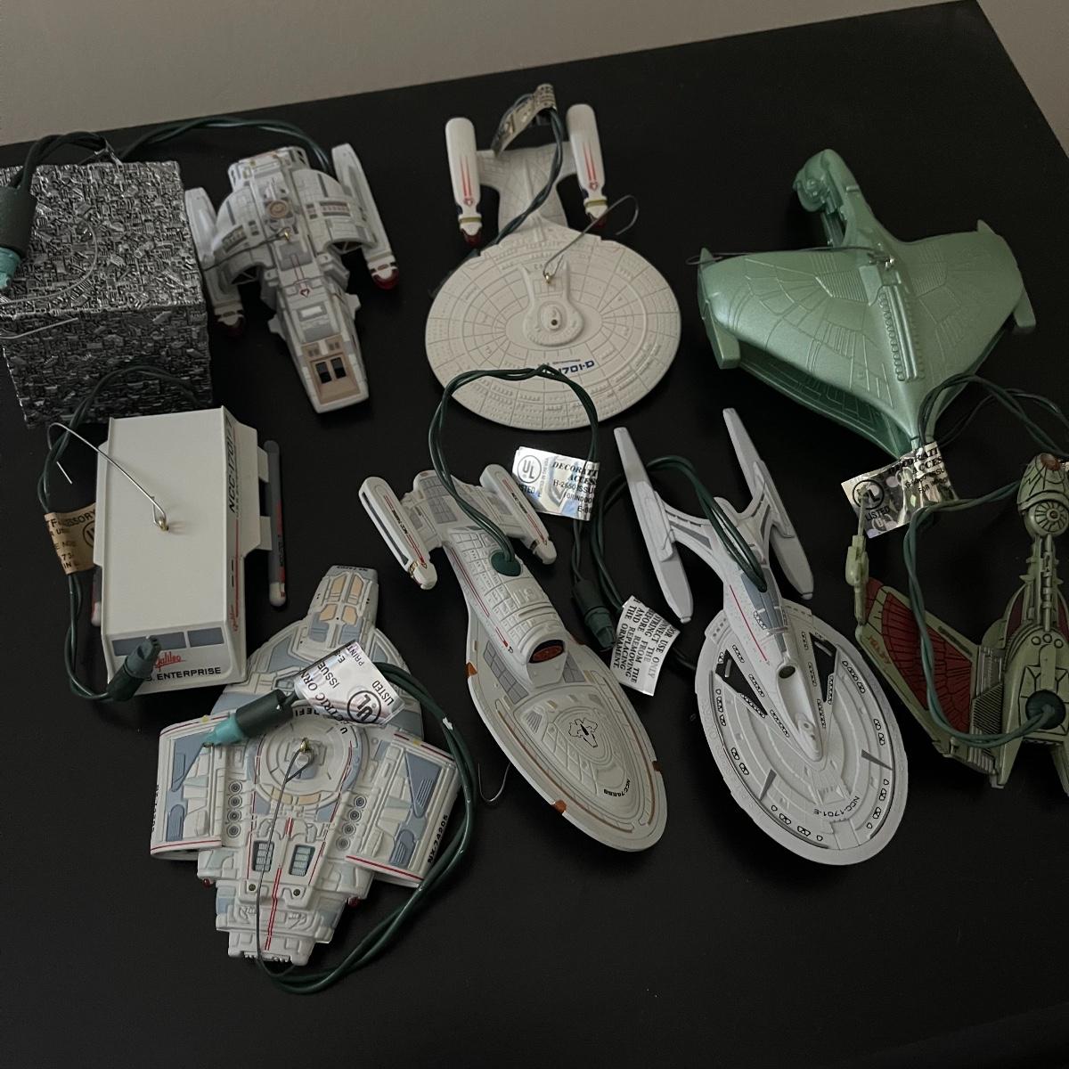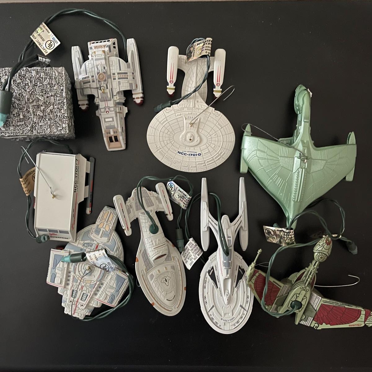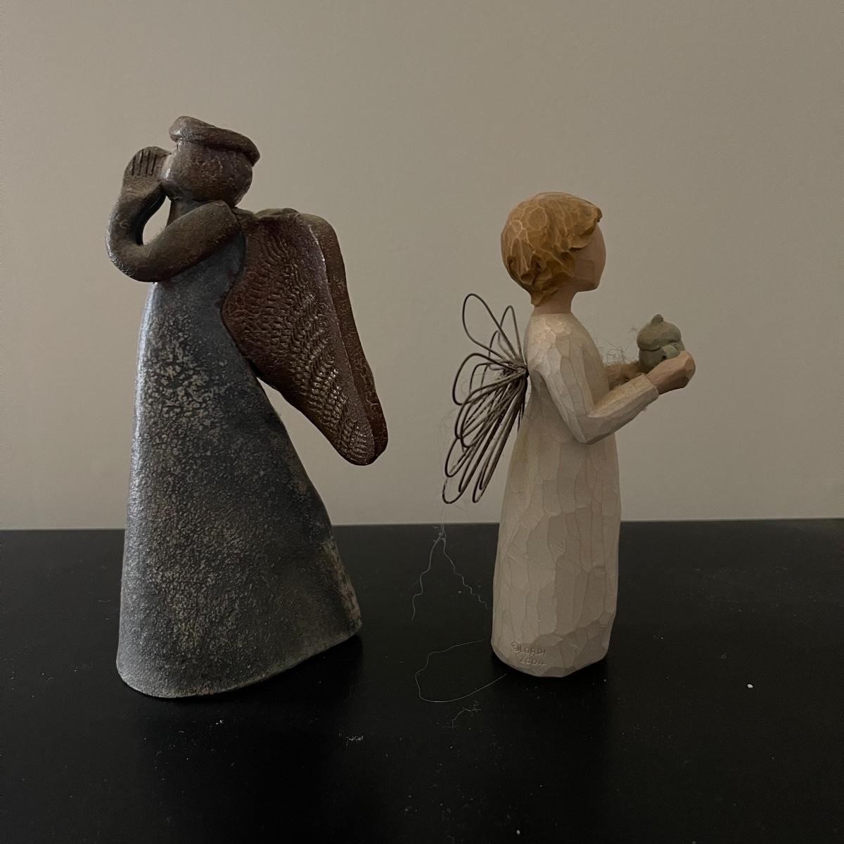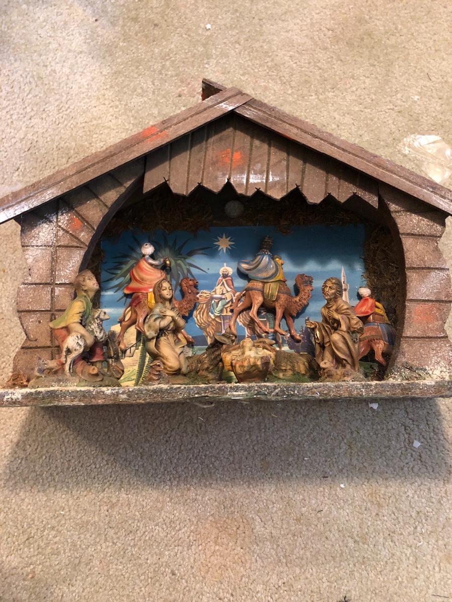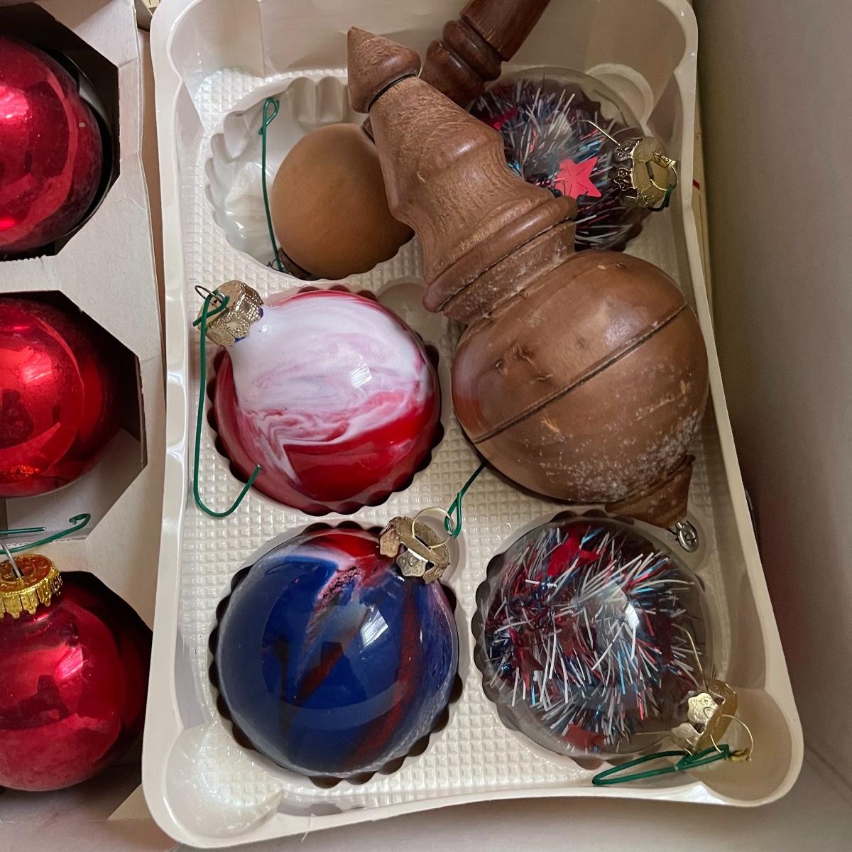 Christmas is coming early this year! This large Christmas lot includes a variety of Christmas decor, ornaments, table linens, candles, craft and baking books, stocking hangers, small baskets, and other items. The decorative ornaments of Santa Claus and more are lightweight and have glitter; the rest of the ornaments are an assortment of colored and clear spheres. There are three small tables that are 20” tall and have 8” x 8” tops. Each table displays different winter scenery. Five small decorative houses that state they are hand-painted and are from 1995 Santa’s Best, three glass hummingbird ornaments, “Angel of the Kitchen” Willow Tree figurine, and a selection of Santa figurines are all examples of the goodies in this lot.