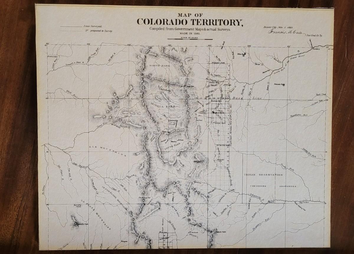 Lot 253: UPDATED!! Very Rare! Antique 1861 Map of Colorado Territory Compiled from Government Maps & Actual Survey- 1st Map of Colorado Territory -HAS BEEN CUT & MOUNTED ON FOAMCORE