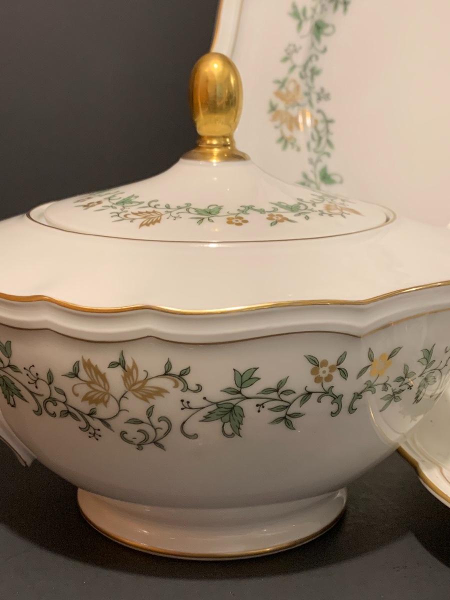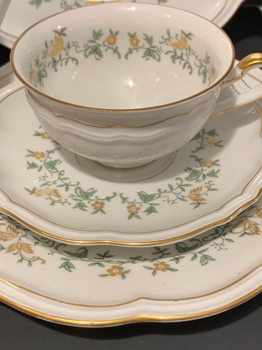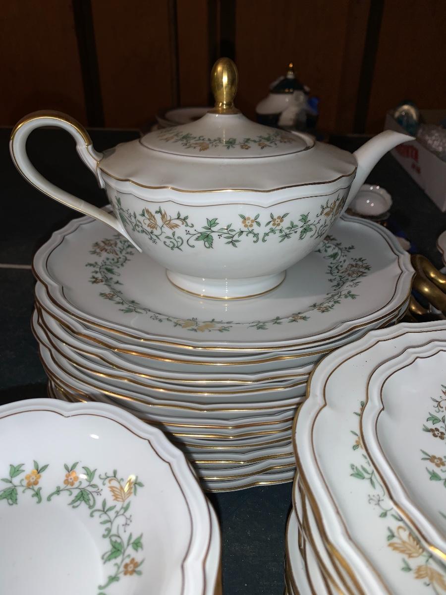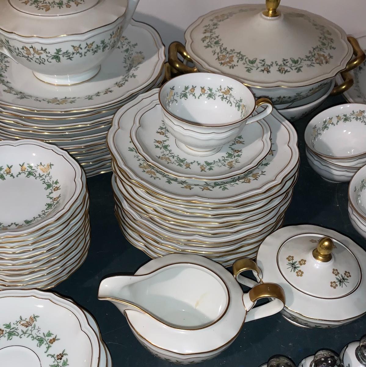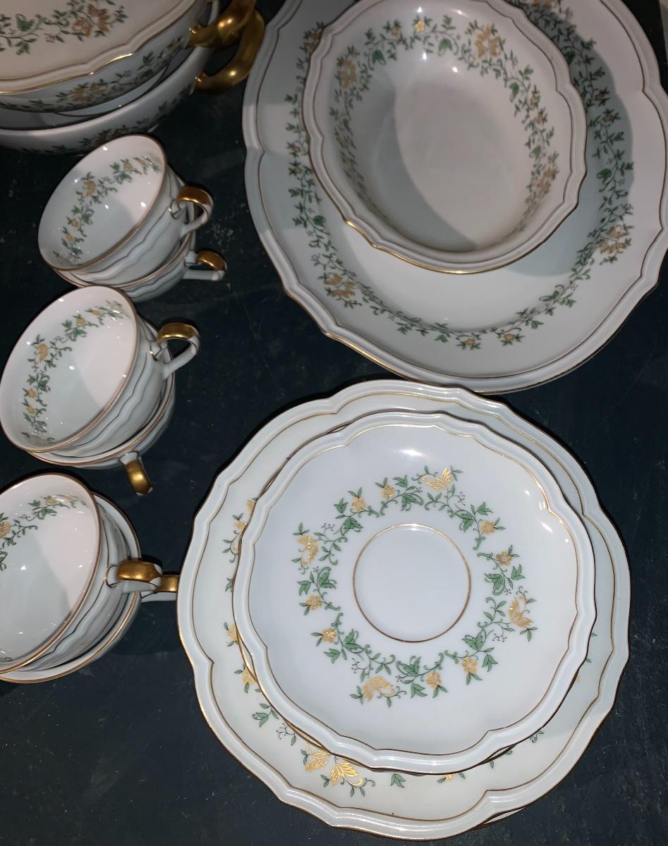 Beautiful large set of Baronet Bavaria-Germany China, 11 dinner plates,12 salad,12 small bowls, 7 tea cups, 12 saucers., 6 soup bowls, sugar & creamer, 2 sets of salt & pepper, teapot, along with serving pieces