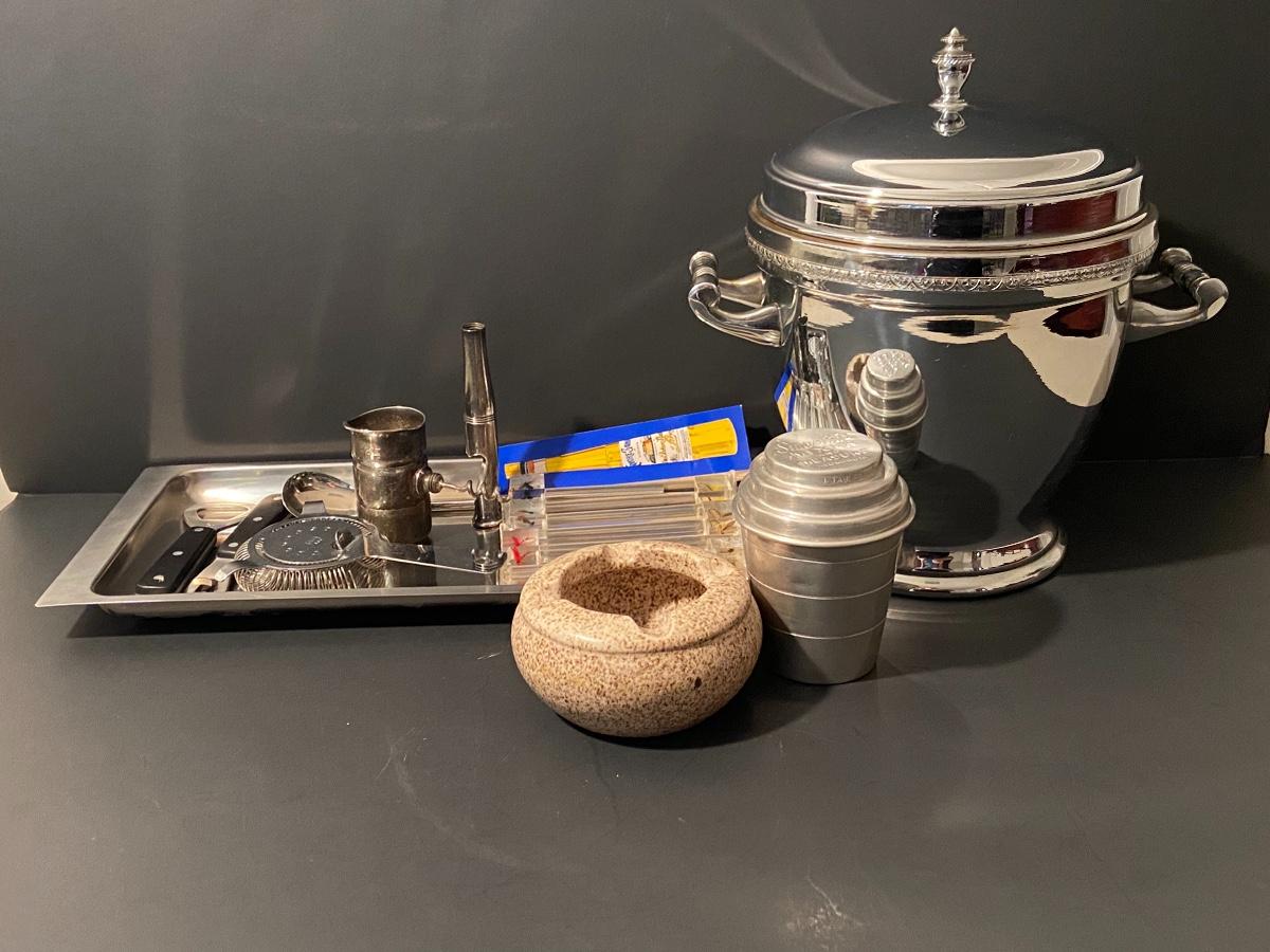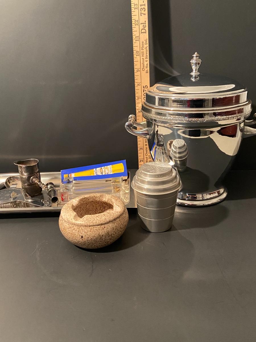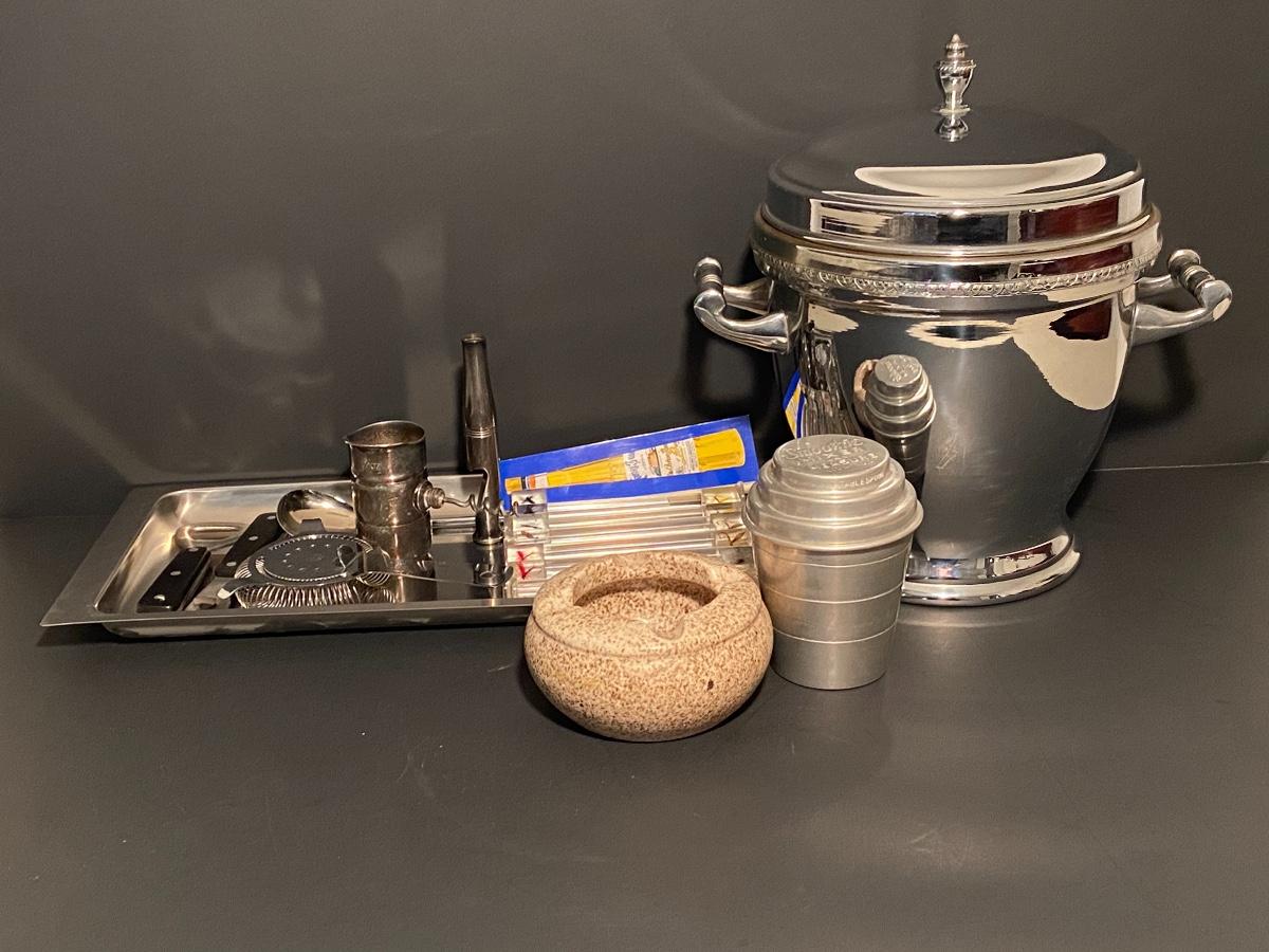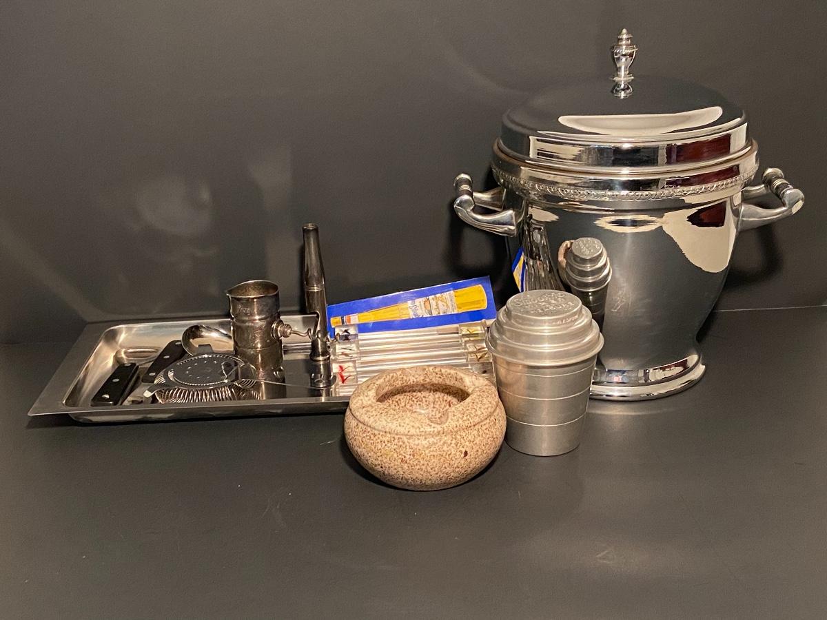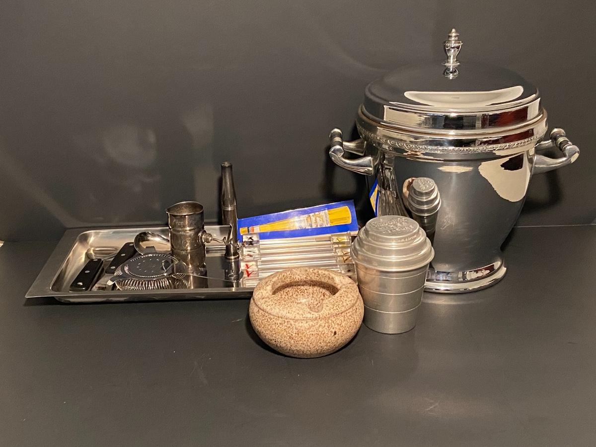 Ice bucket, shaker cup, bottle opener, corkscrew w/ Royal Doulton ashtray. Please see all pictures as they are the best representation of the items. The pictures show condition, measurements if taken, and what is included in the lot. Due to the large amount that we photograph and the time frame, we are not always able to take measurements. All items unless noted, are pre-owned and have been used. If you purchased furniture, you must bring help. We do not allow one person to carry large furniture out on their own. Bring help, tools and a truck for the safety of our client’s homes, and your personal safety. Company policy. Thank you.