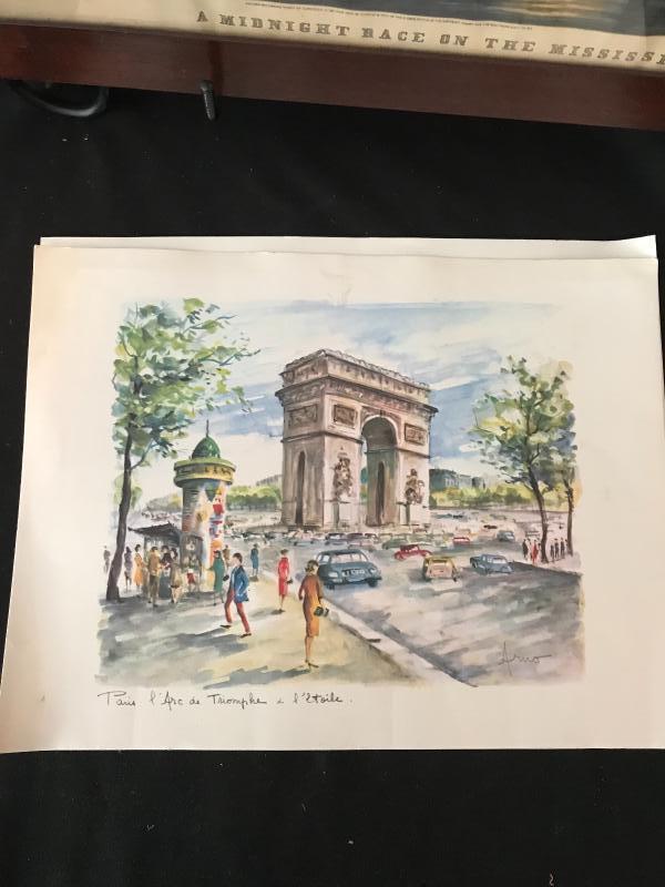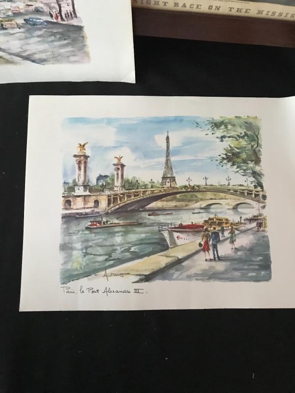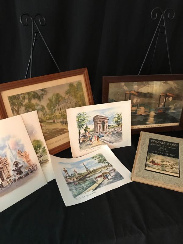 Awesome collection of two framed Currier & Ives Mississippi Landscapes (A Home on the Mississippi measures approx. 17.75x13.75”) Coffee table book “Currier & Ives Printmakers to the American Dream” adds even more prints to this lot. A signed Sheldon Fink piece states 91/200 and is complete with Document of Authenticity. Eight antique car prints total, four cars from 1896-1917. Lastly, six European landscapes 4 signed Asterio and 2 appear to be signed Arno. Shipping available, please call UPS for a quote prior to bidding, as art can be costly to ship.
