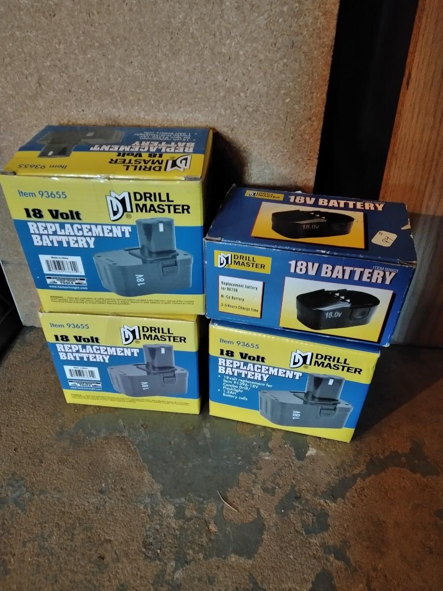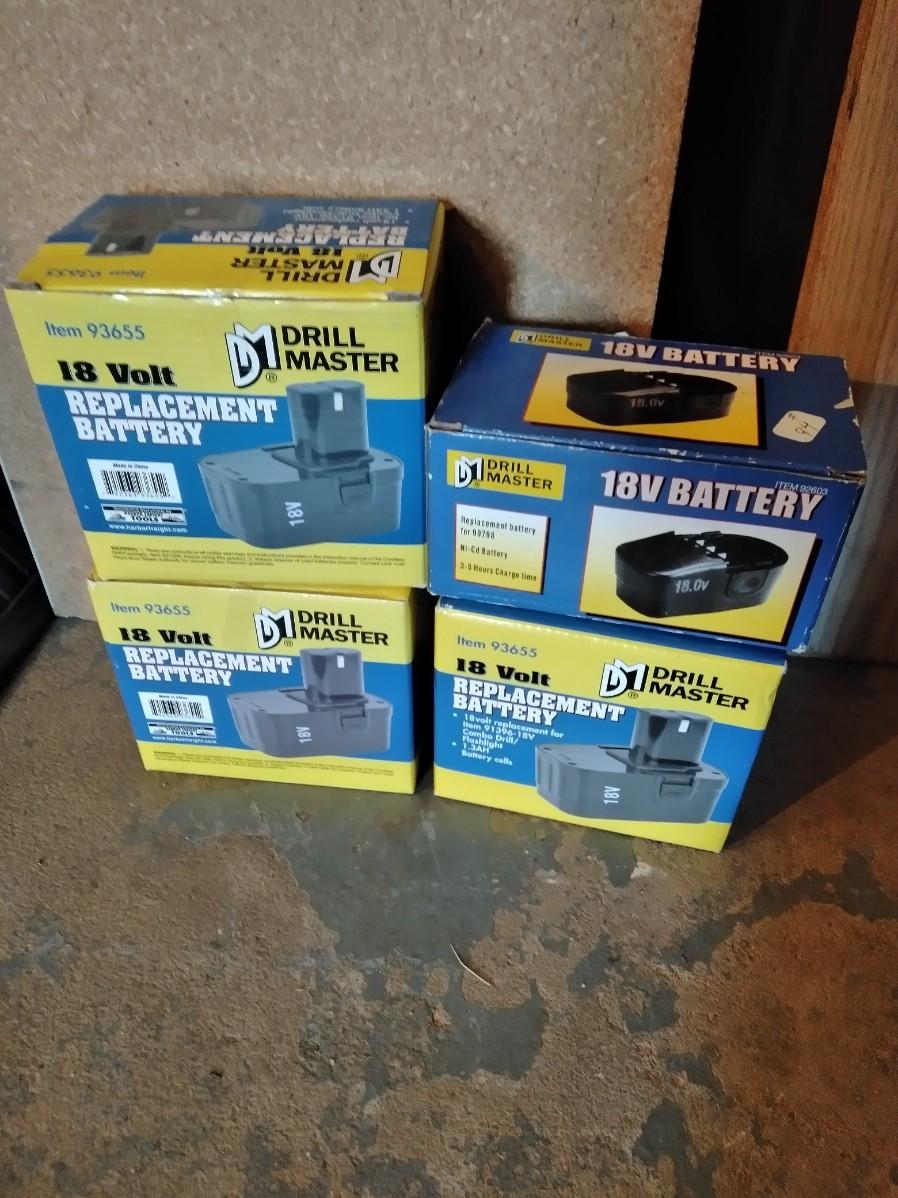 FOUR DRILL MASTER 18 VOLT REPLACEMENT BATTERIES