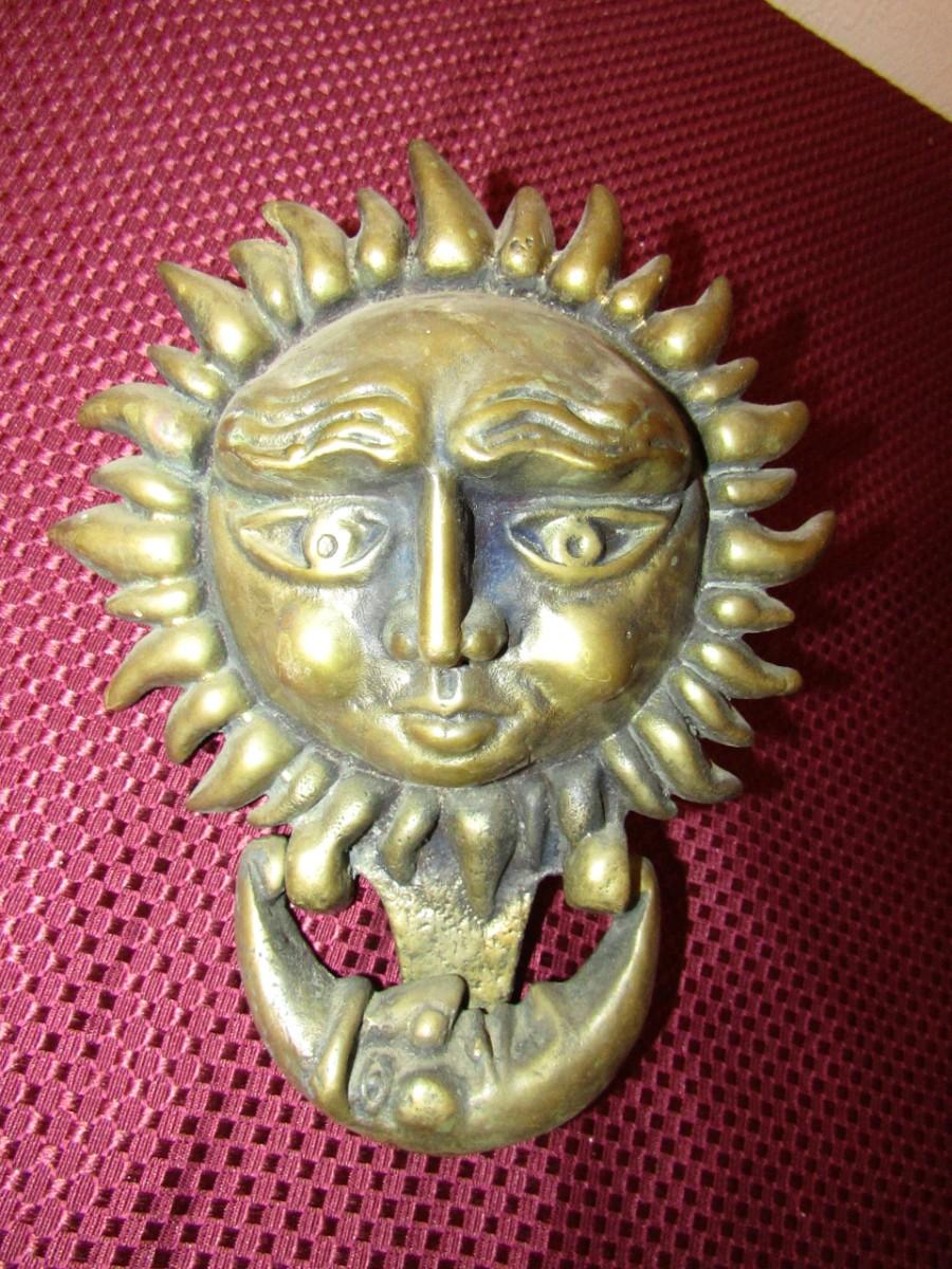 LOT 253 SOLID BRASS SUN AND MOON DOOR KNOCKER