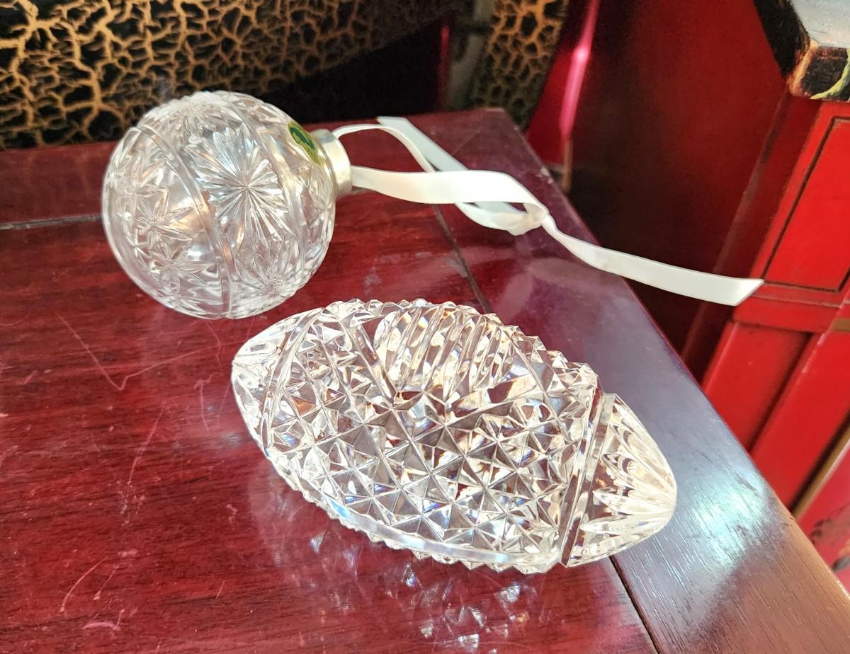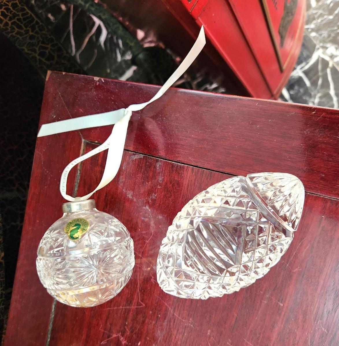 Both pieces marked Waterford crystal - Ornament is the Times Square 2003 Edition (marked) - we also ahve a 5" long Waterford Foorball. Both in good condition. No boxes.