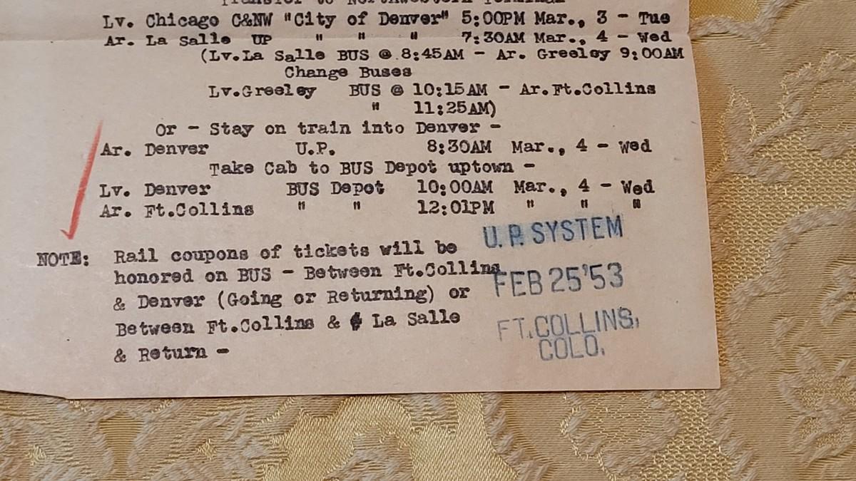 Lot 254: 1950's Railroad Ephemera- Ticket & Schedule