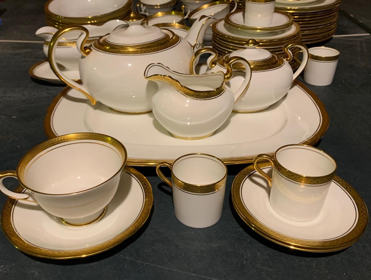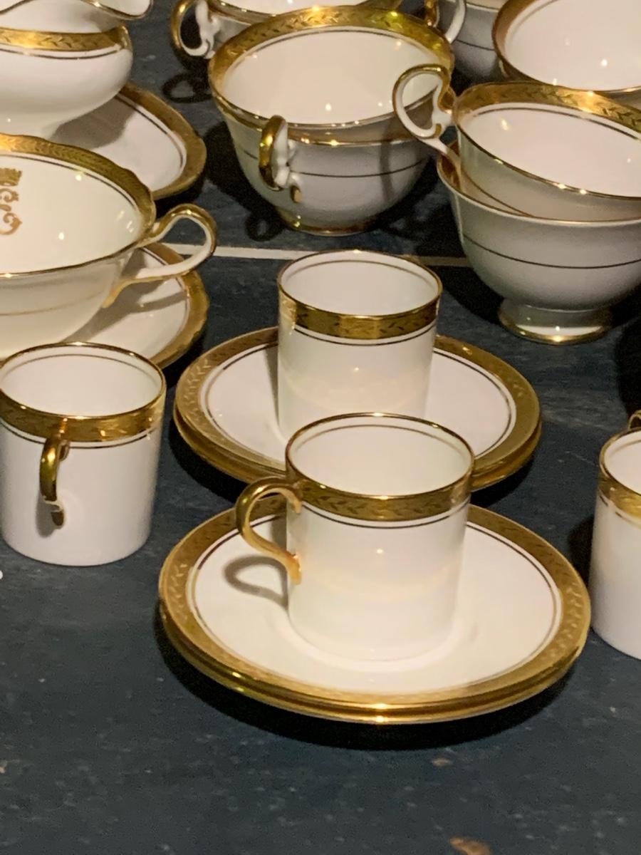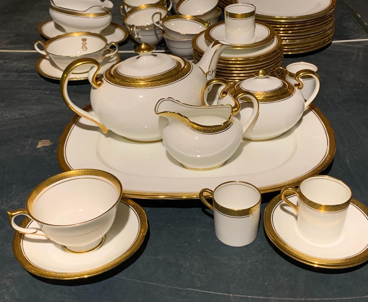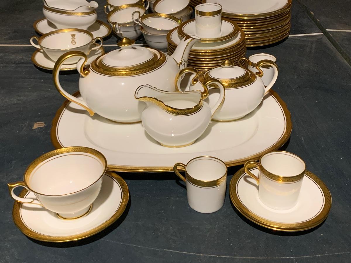 Lot 254: Aynsley, English "Regency" Tea/Dinner Service for 12 (With Extras: Espresso, Soup, etc)