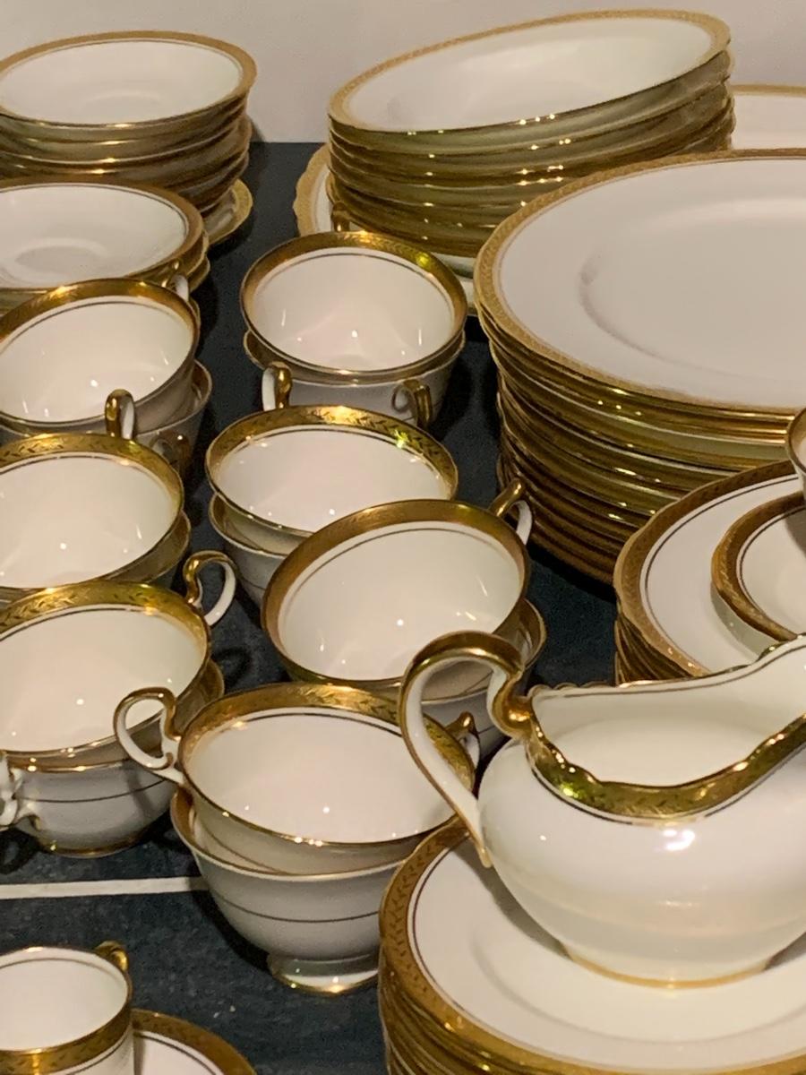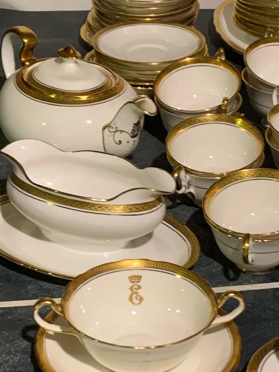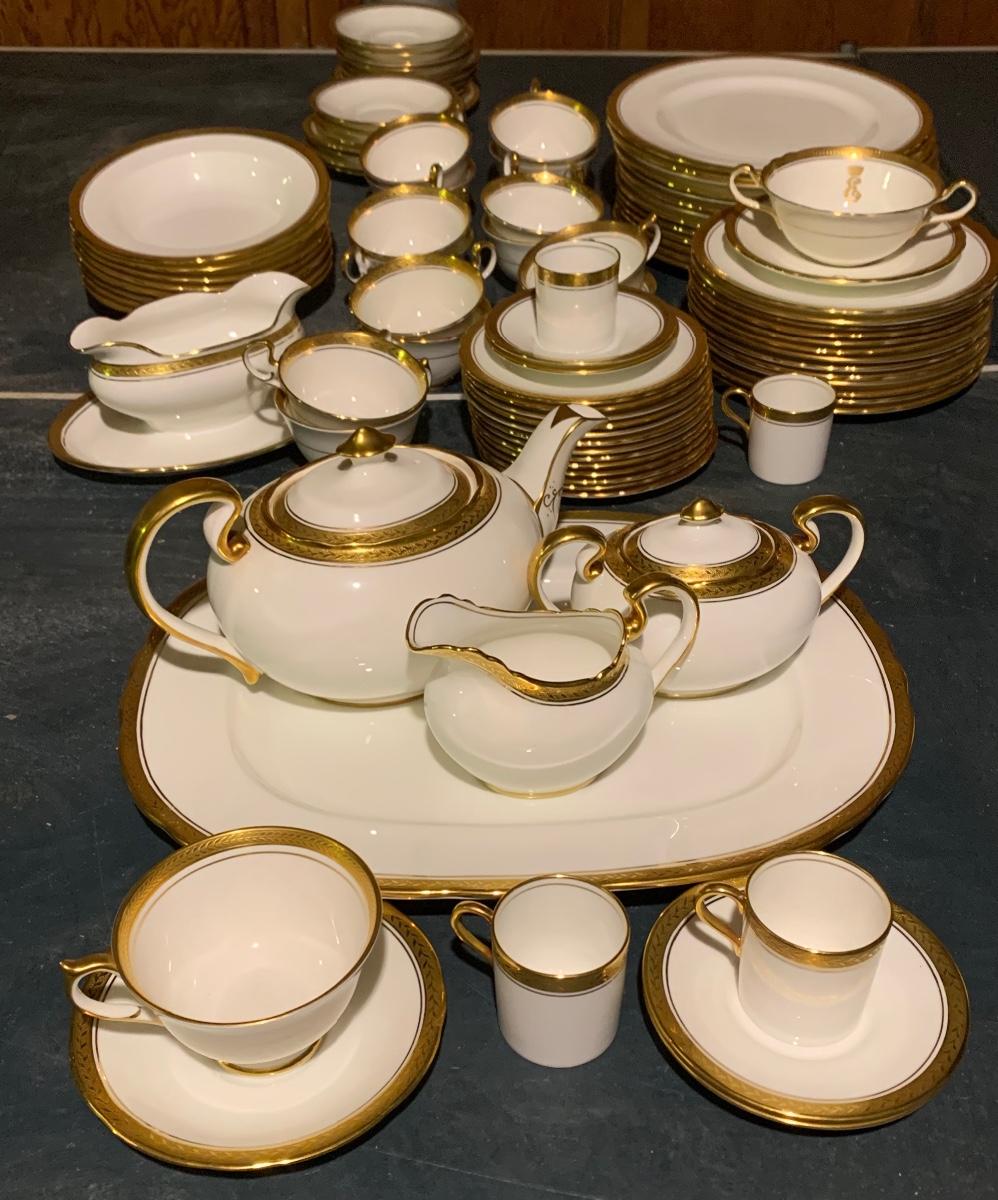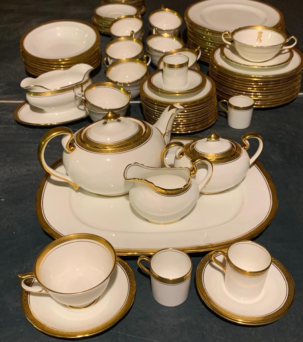 Lot 254: Aynsley, English "Regency" Tea/Dinner Service for 12 (With Extras: Espresso, Soup, etc)