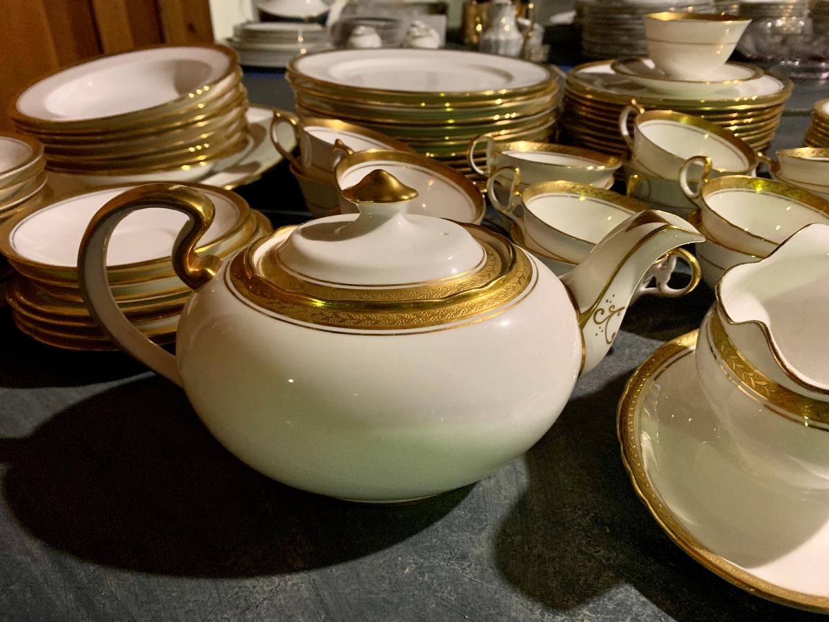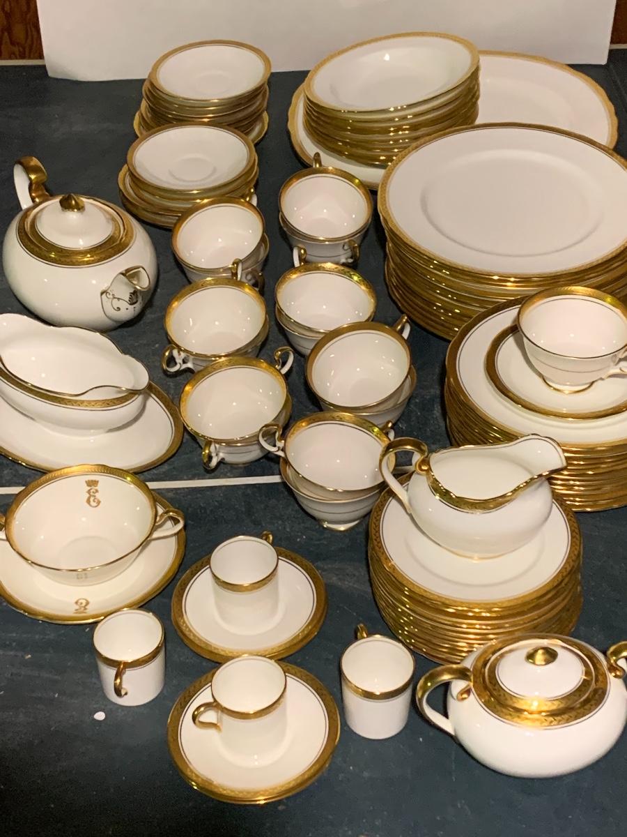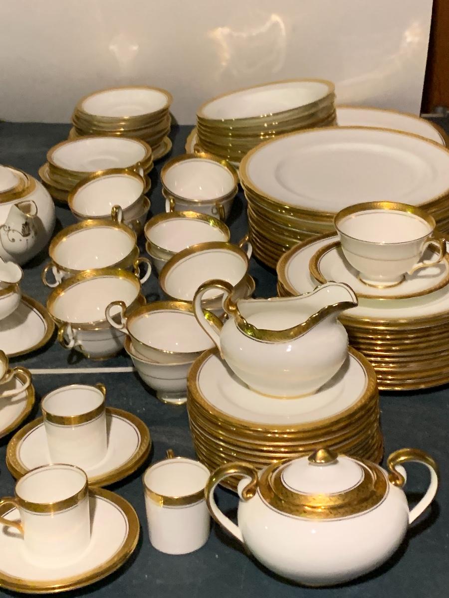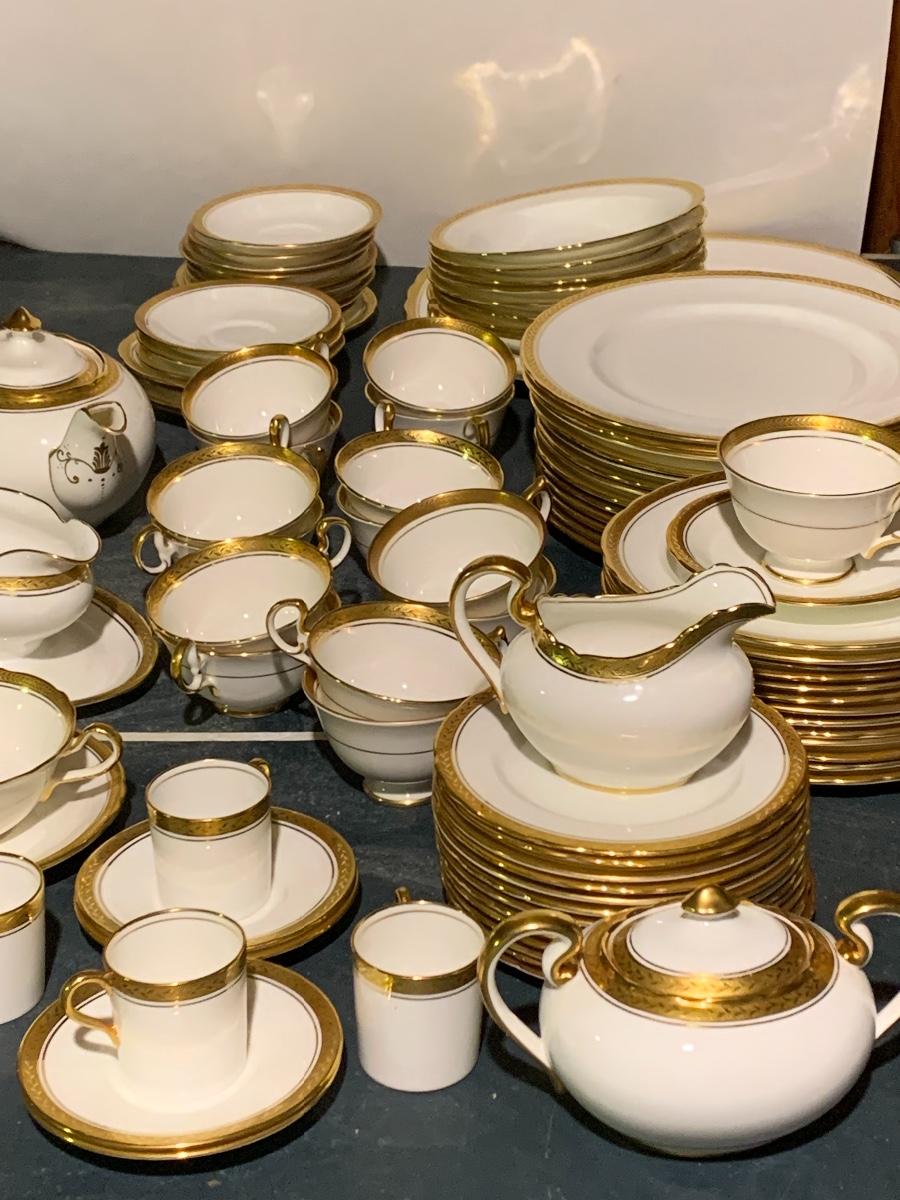 Lot 254: Aynsley, English "Regency" Tea/Dinner Service for 12 (With Extras: Espresso, Soup, etc)