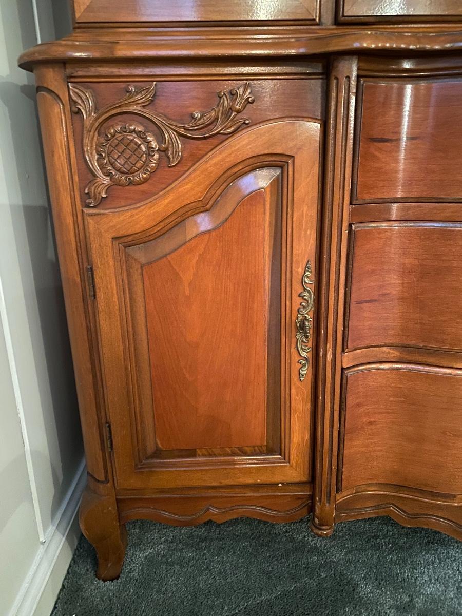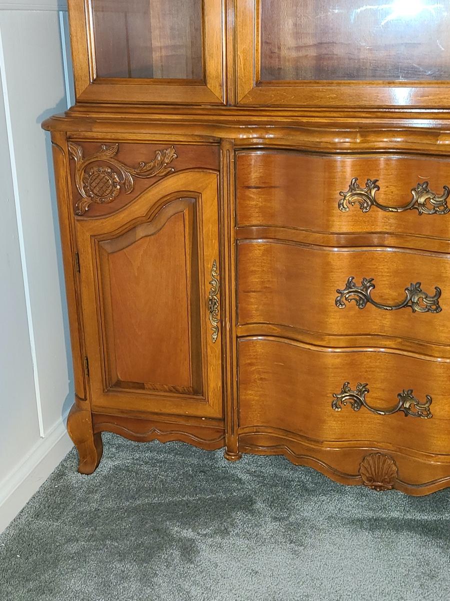 This vintage piece is gorgeous! It is perfect for dish collection as is, but this are being up-cycled by removing the doors and glass, and being used as book and curio cases! Perfect in any room in the home, including as bathroom storage with glass removed! Please see all pictures as they are the best representation of the items. The pictures show condition, measurements if taken, and what is included in the lot. Due to the large amount that we photograph and the time frame, we are not always able to take measurements. All items unless noted, are pre-owned and have been used. If you purchased furniture, you must bring help. We do not allow one person to carry large furniture out on their own. Bring help, tools and a truck for the safety of our client’s homes, and your personal safety. Company policy. Thank you.