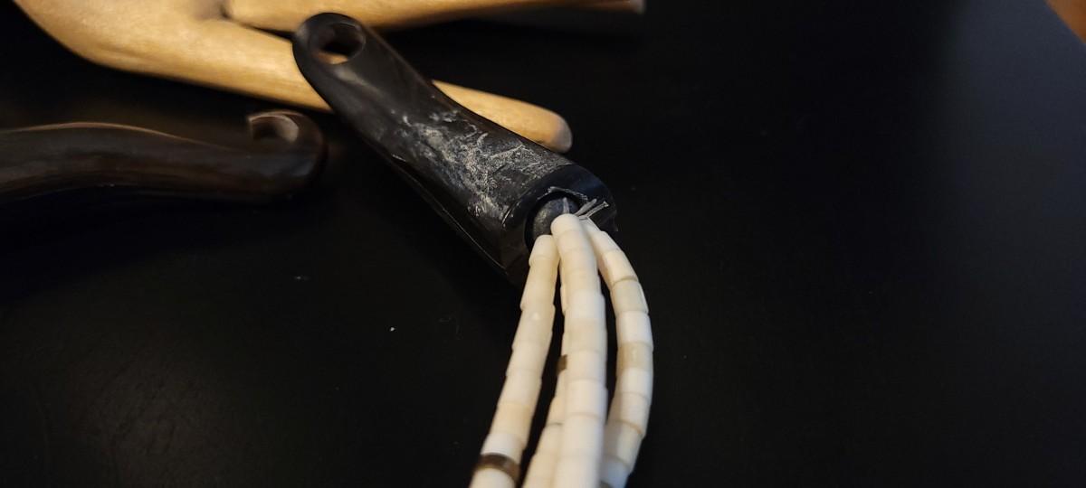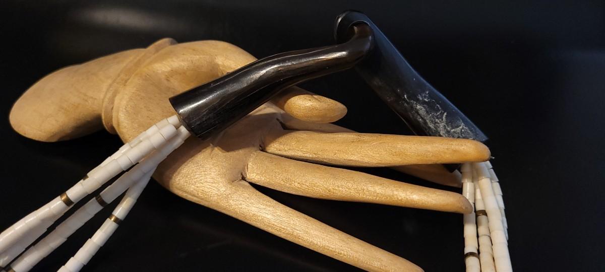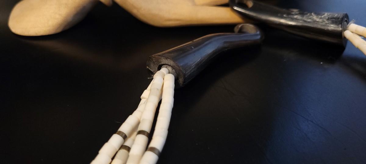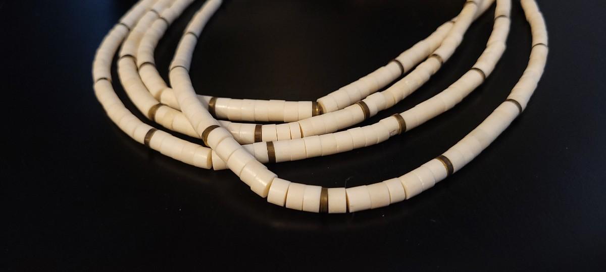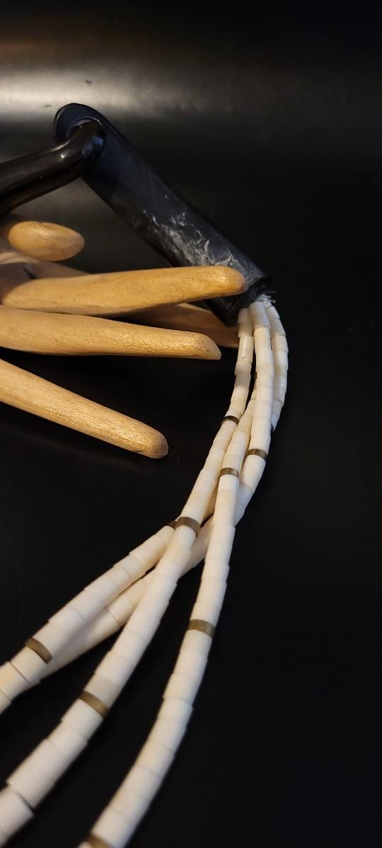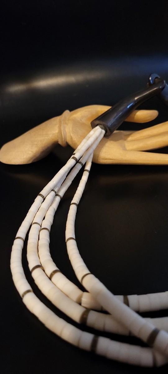 Lot 254: Vintage Native American Shell Bead Necklace with Bone Hook Enclosire