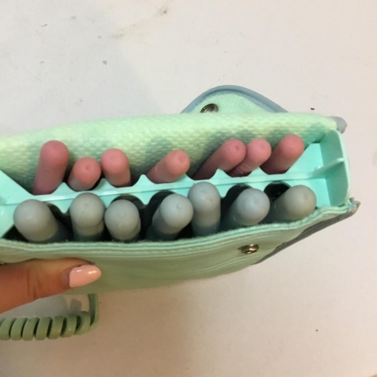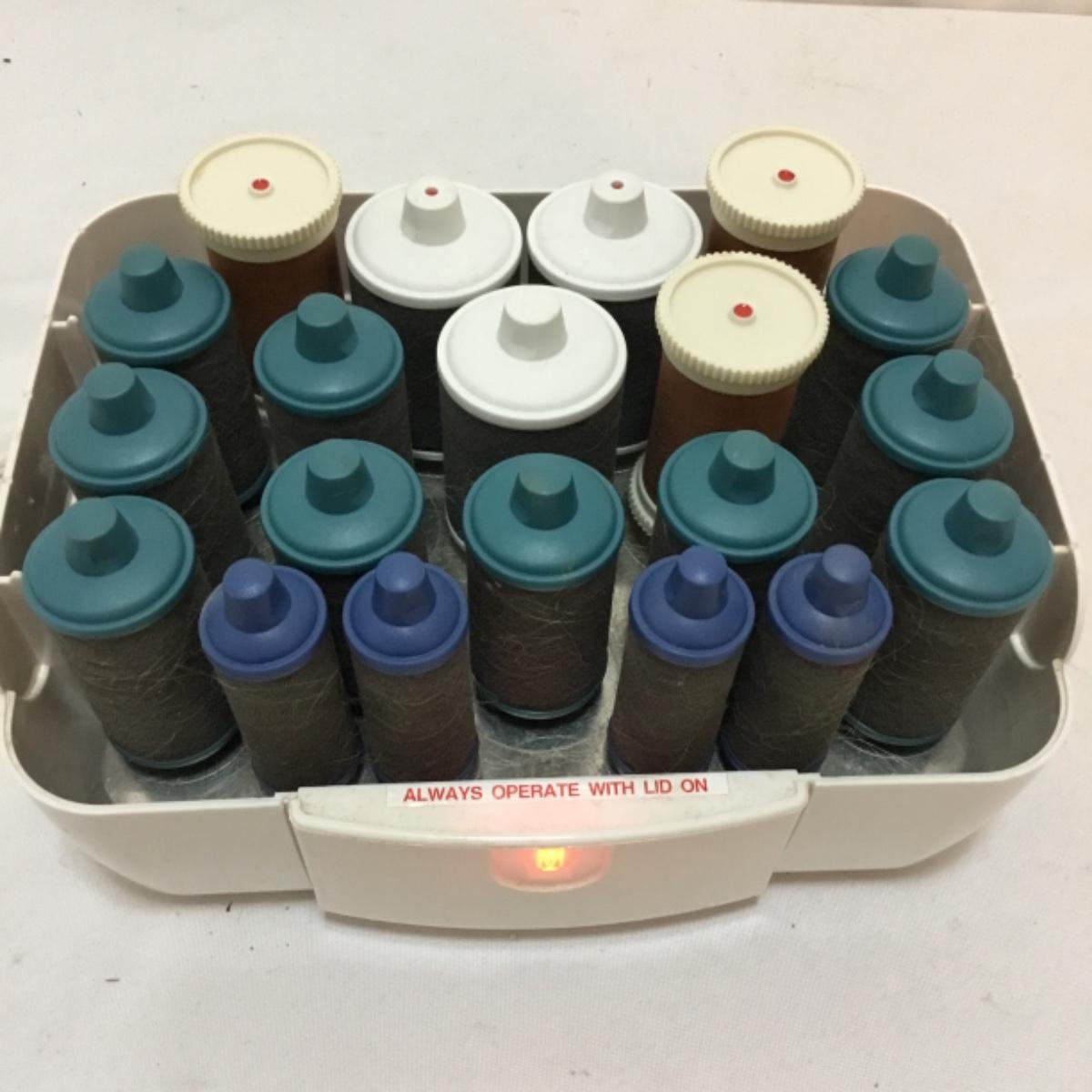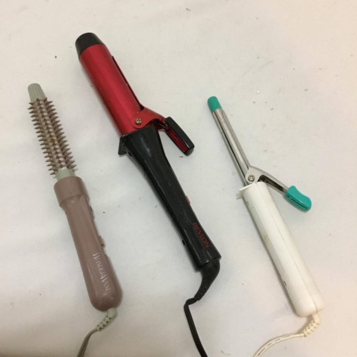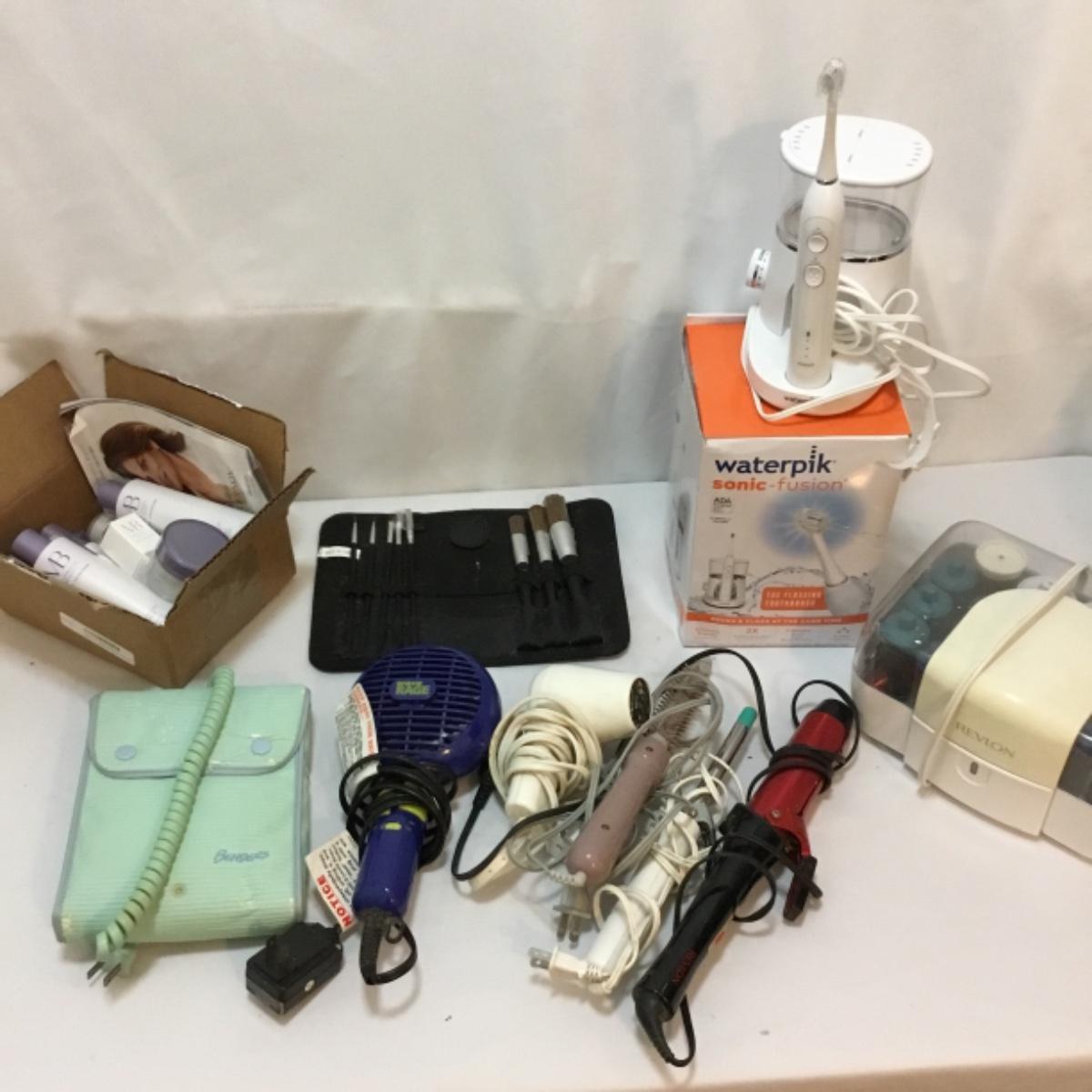 Lot includes bathroom accessories. Notice a Waterpik; an automated toothbrush and hydro-flosser. Hair curlers, blow dryers, and hot rollers. Benders bag measures . Appliances turned on when tested. See photos for details. Shipping available