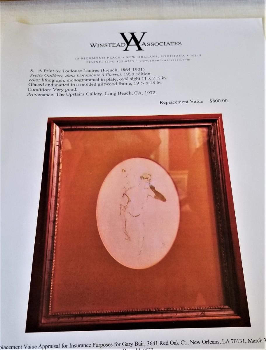 Lot #254 Color Lithograph - Toulouse-Lautrec "Yvette Guilvert, dans Columbine a Pierrot"