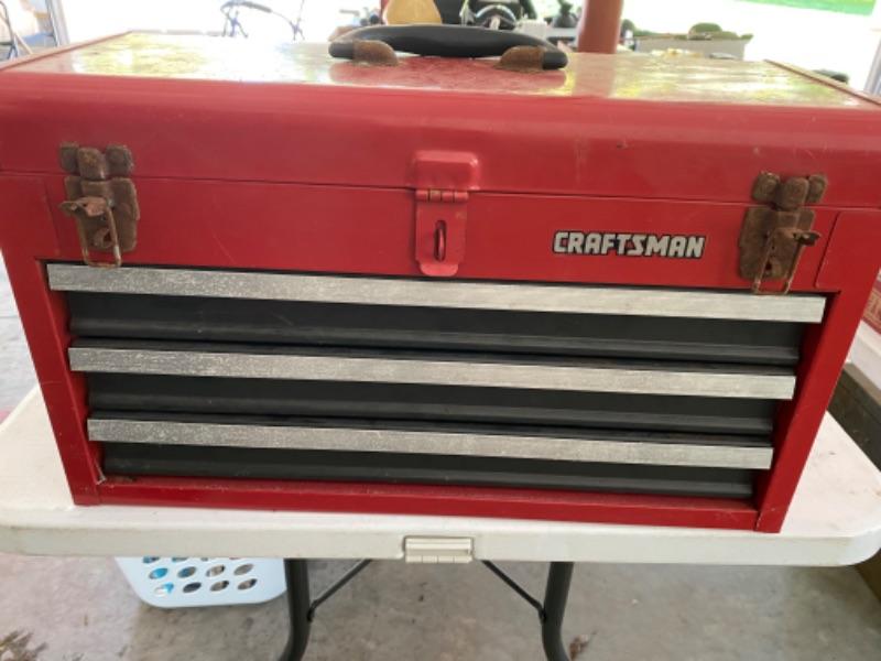 Craftsman Metal Tool Box with 3 drawers , lift up lid , 20.5” x 12” tall x 8.5” deep