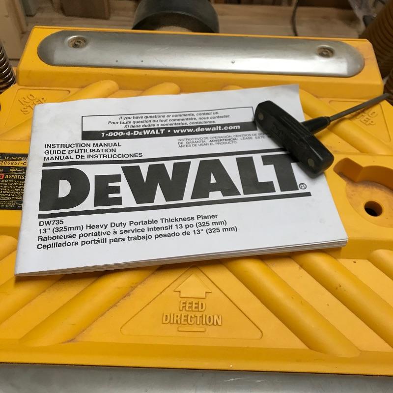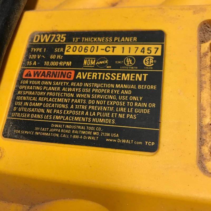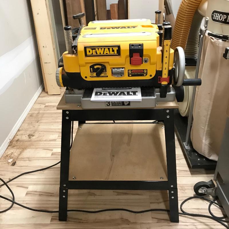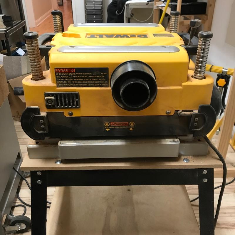 DeWalt DW735 13” Heavy Duty Portable Thickness Planer and table. Planer appears to work well and seems to be in nice shape. Table has a lower shelf and stands 27” x 25” x 28.5”. Planer is not attached to table. See photos. No shipping.