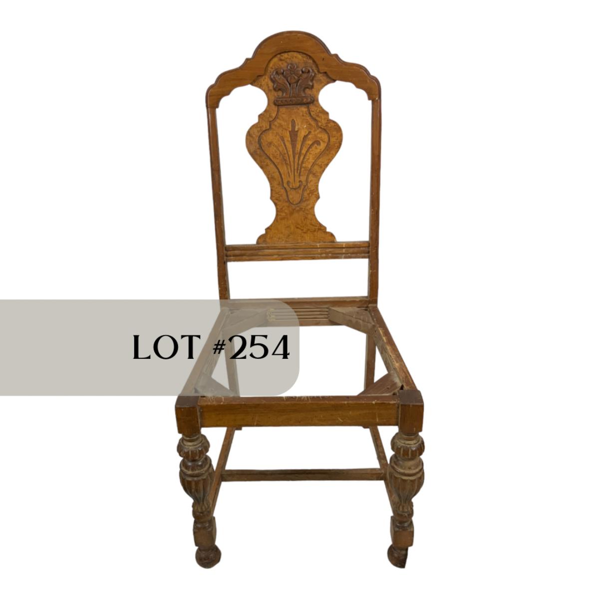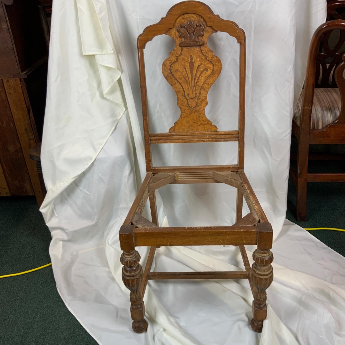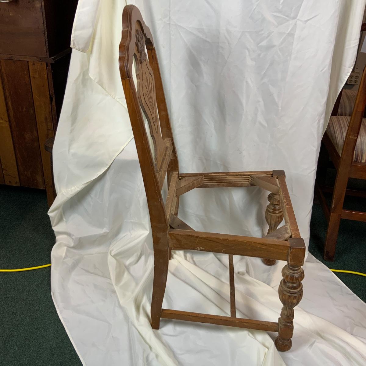 Dining chair with no seat. You get to decide what it looks like! //::\\ Please see photos for details and condition. No attempt has been made to hide any imperfections. All items listed in this auction are warehouse items, and need to be cleaned. A majority of the items need restoration as well. All items are sold AS IS and WITHOUT GUARANTEE. If you are uncertain about an item, DO NOT BID. Due to the nature of this online auction in-person inspection is HIGHLY recommended. All Sales are FINAL. Pick Up Times are FIRM. Please confirm with your own schedule that you can pick up in the scheduled times listed in the Terms and Conditions. Any questions please message the auctioneer. DO NOT Contact The Harp Gallery.