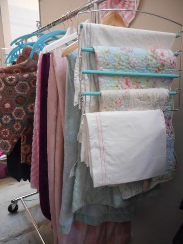 Lot 254 - Rolling Clothes Rack Full of Blankets + One Black Sheet