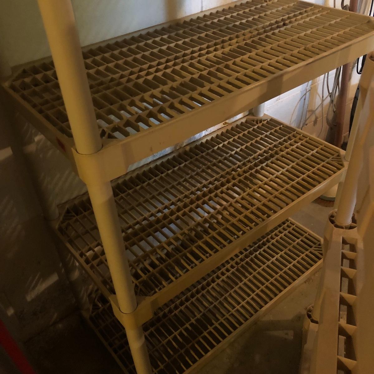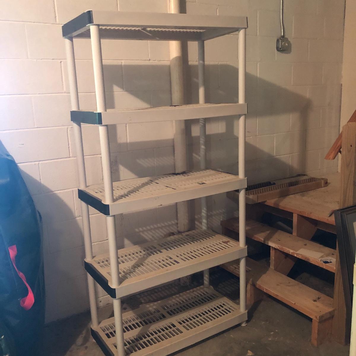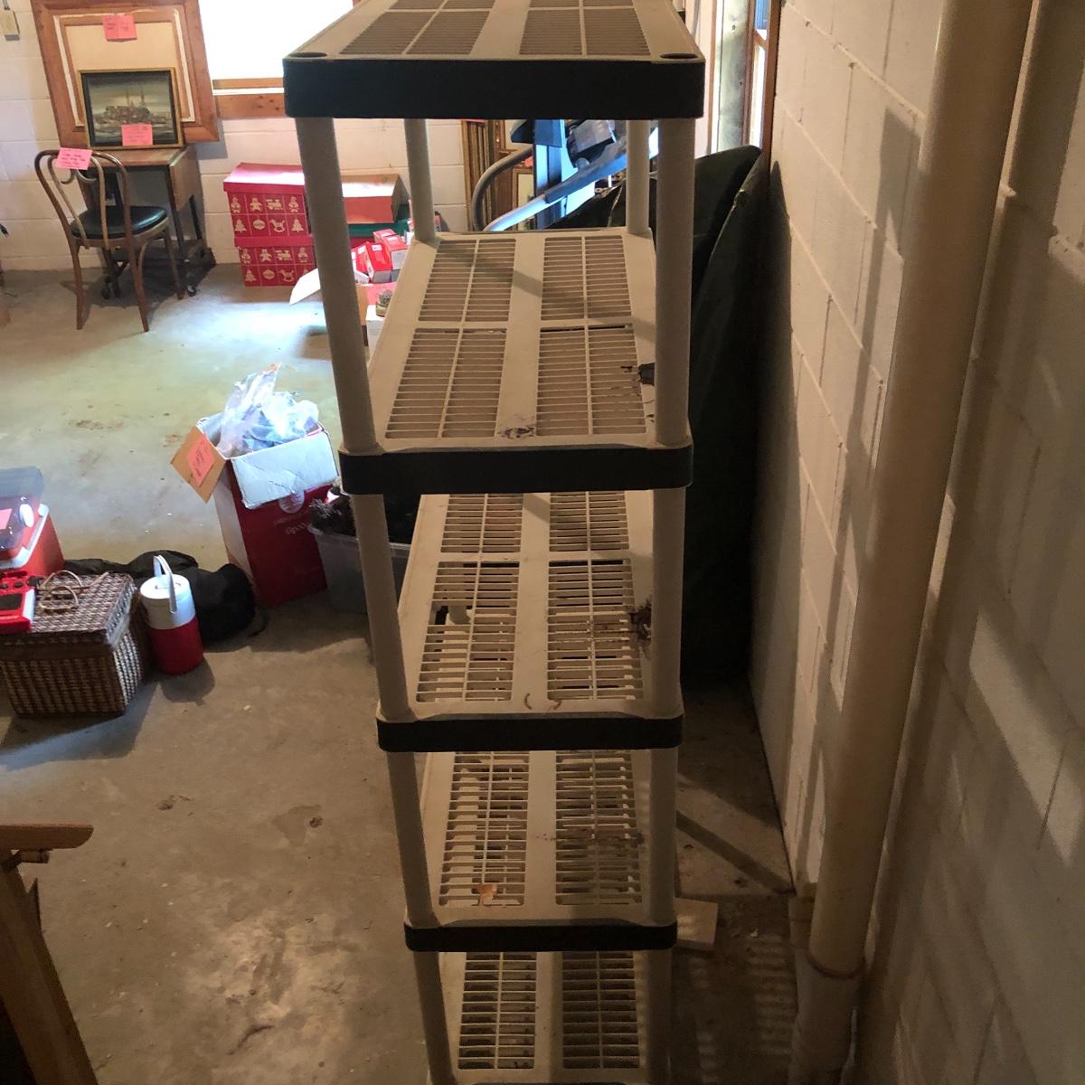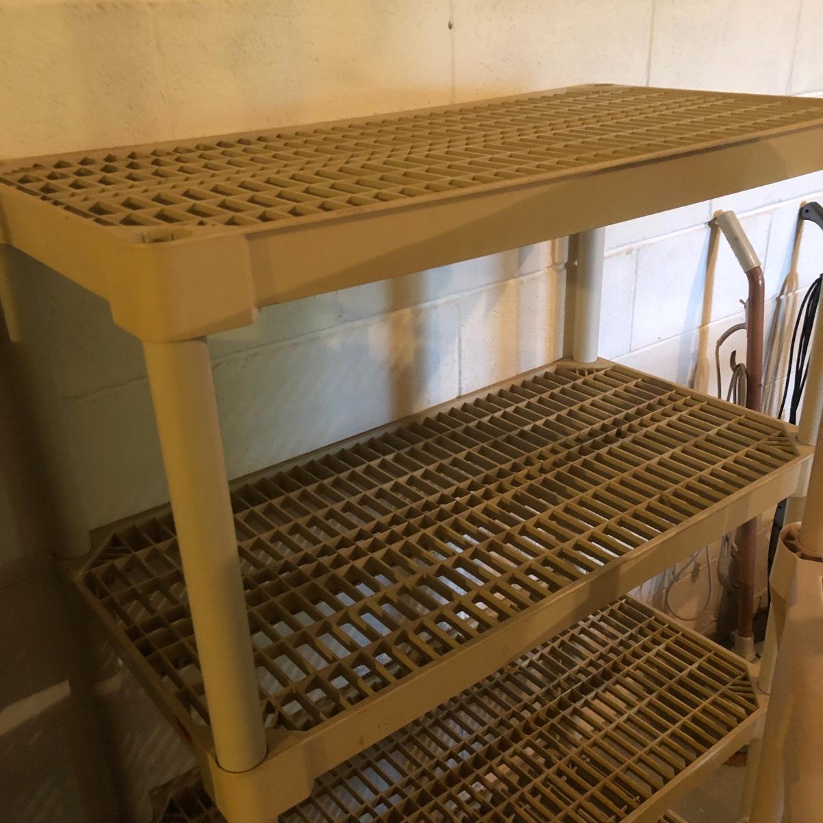 Get organized with this lot! It includes seven plastic Shelves. Four have four shelves and measure approximately 35.5” x 17.5” x 54”. The other beige shelf only has three shelves and is 37” tall. The other two white shelves have five shelves and measures 35.5” x 18” x 74”. Please note the stains on one of the white shelves and damage (looks as if it will come off with some cleaning). Local pick up only.
