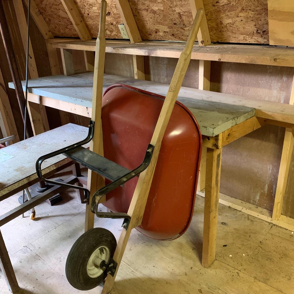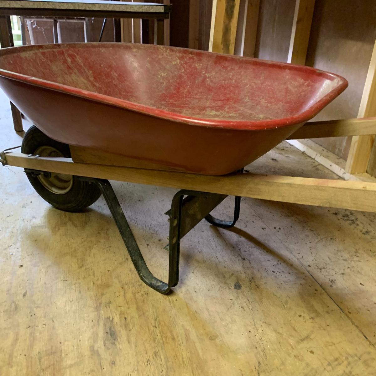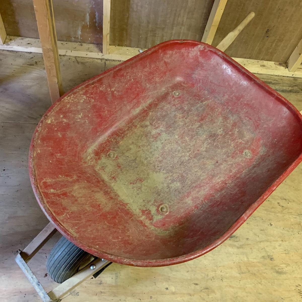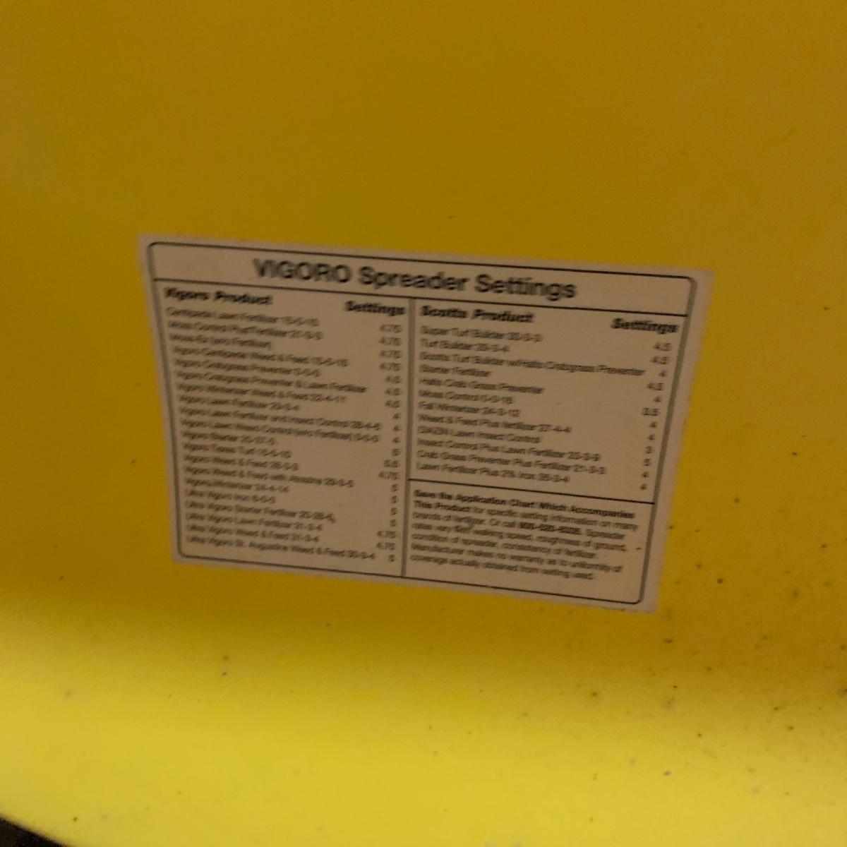 This lot contains two spreaders and and wheelbarrow. There is a yellow Vigaro 10,000 Broadcast Spreader that appears to be new or very gently used. From its longest points, it is 33” long and 32” tall. There is a smaller Scotts Easy Green Lawn Spreader that is in used but good condition. This one is 42” long from handle to front. And there is a nice big red metal wheelbarrow with wooden handles that appear to be in used but excellent condition. It measures 59” along the wooden handles to the longest point at the front. Local pickup only.