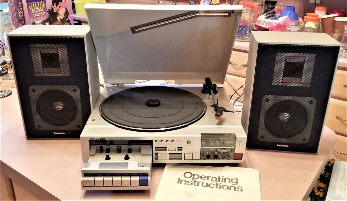 This great vintage Panasonic stereo outfit is model # SG-V300/V305 - has the instruction book. Turntable, radio, Cassette player, speakers. Super Clean. WORKS.