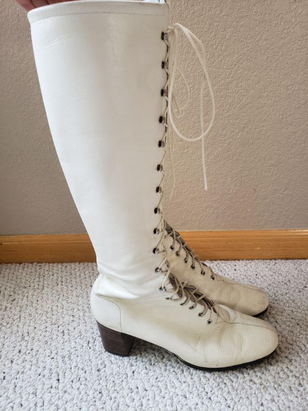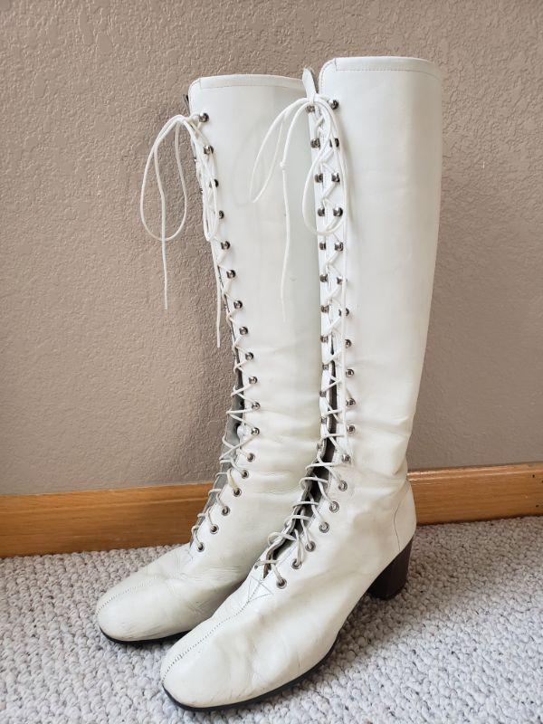 Lot 2-540: 1970's White Lace Up GoGo Boots